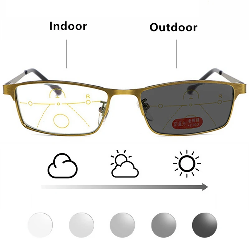 Очки для чтения мужские фотохромные, прогрессивные Мультифокальные CR-39, с защитой от синего излучения, в металлической оправе 15