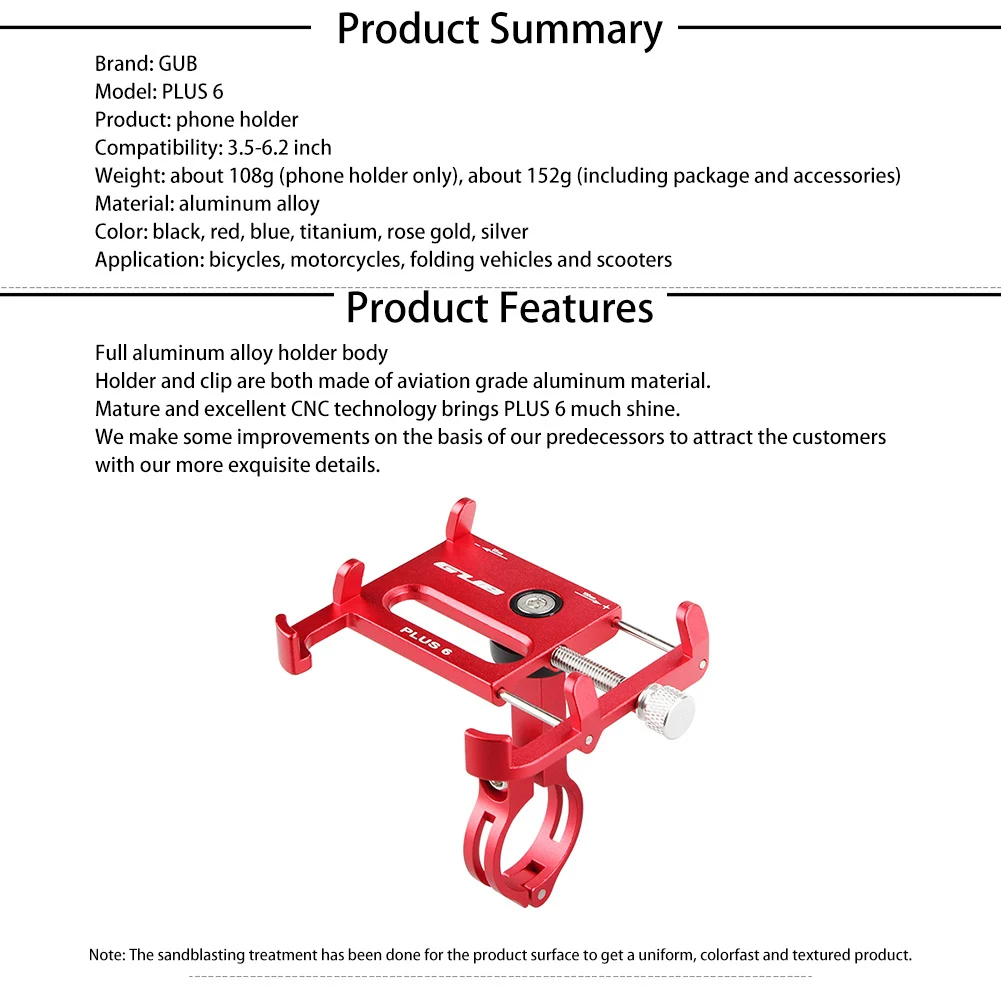 Держатель для сотового телефона GUB plus 6, металлический, с ЧПУ, подходит для смартфонов 3,5-7,5