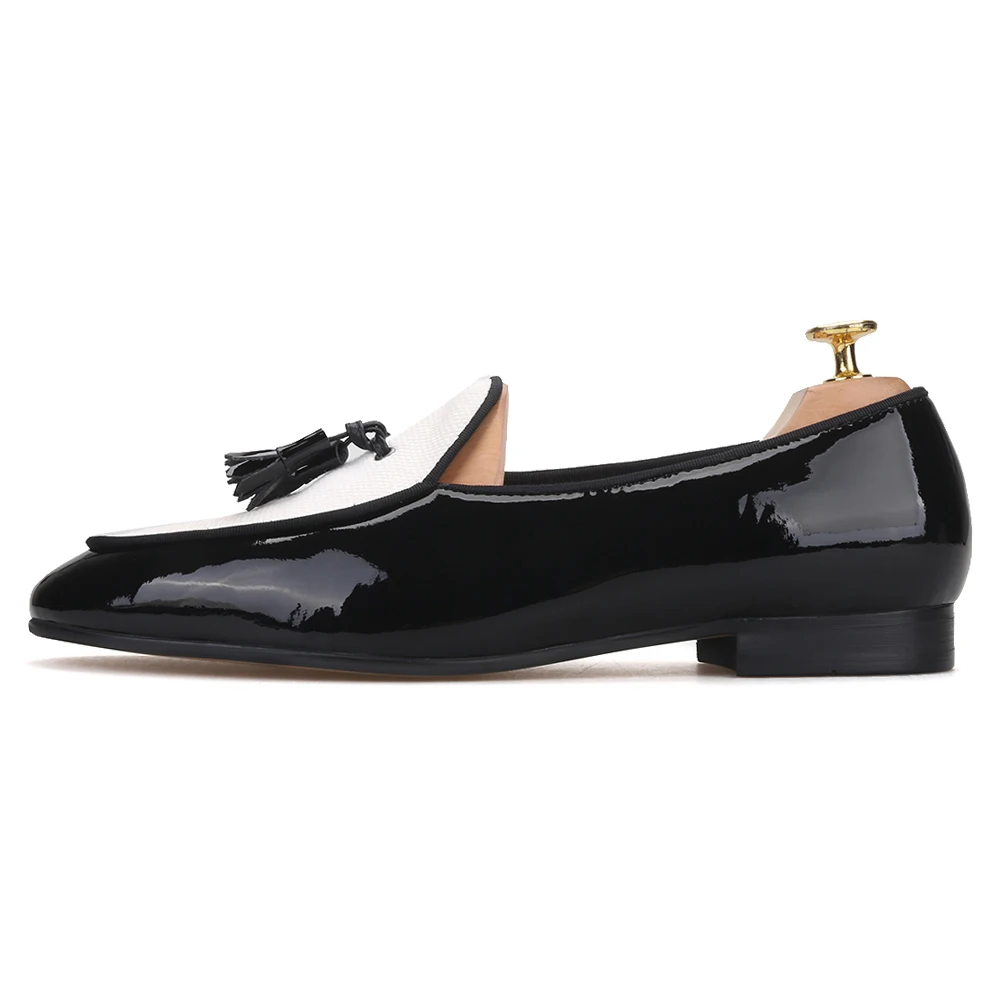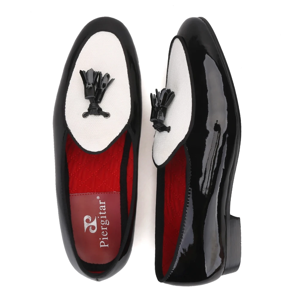 Мокасины Piergitar мужские из лакированной кожи, парусиновые лоферы, модная обувь с бахромой вечерние НКИ и свадьбы, черные