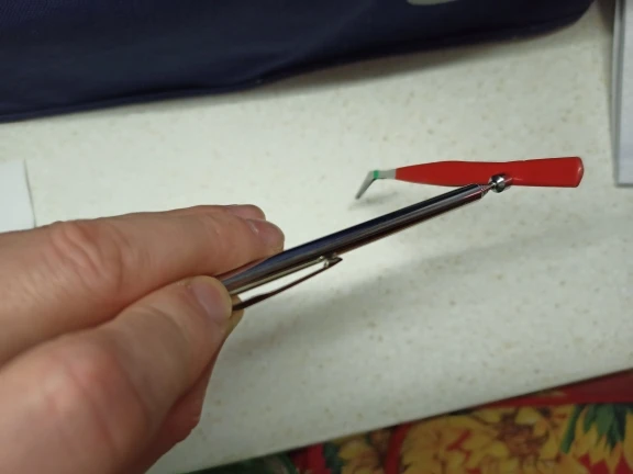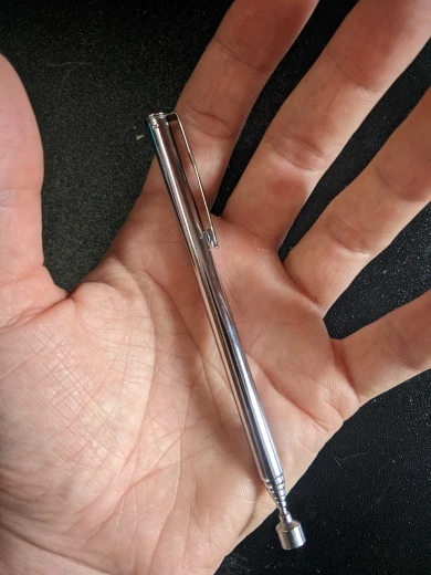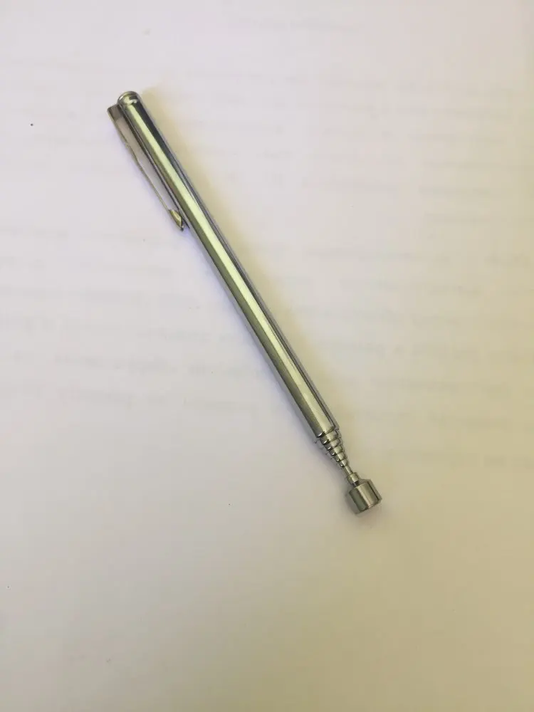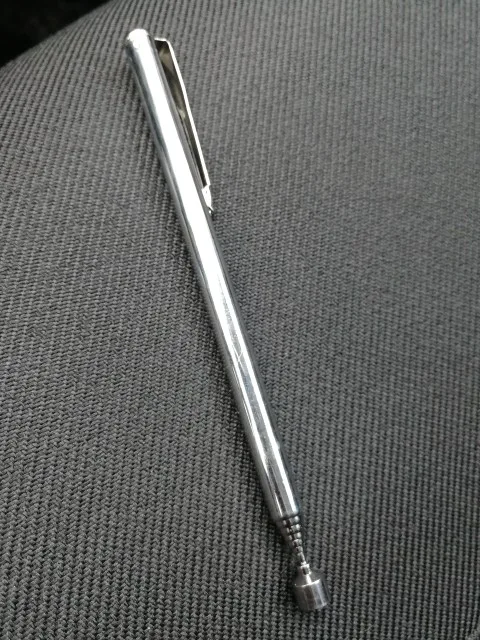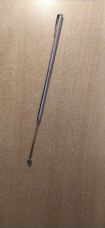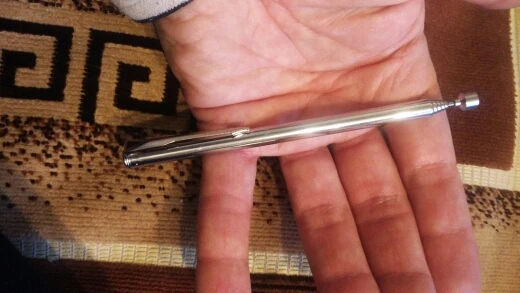 Кинули в почтовый ящик. Доставка долгая ППц по РФ. Трек отслуживался только до границы с Россией. Неодимовый магнит на конце держит хорошо. Поднимал с пола строительный фен за сопло. Продавцу 5++++++ ни смотря ни на что!
