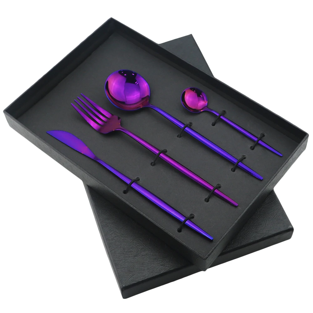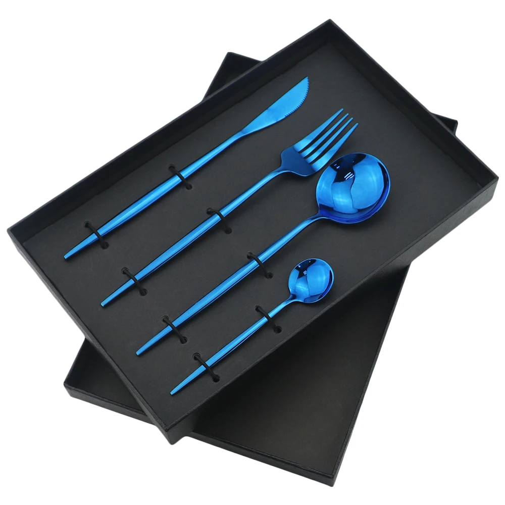 Набор посуды из нержавеющей стали, комплект из 14 комплект столовых приборов, ножа, ложки и вилки, люксовый набор кухонной утвари синего цвета, 1810