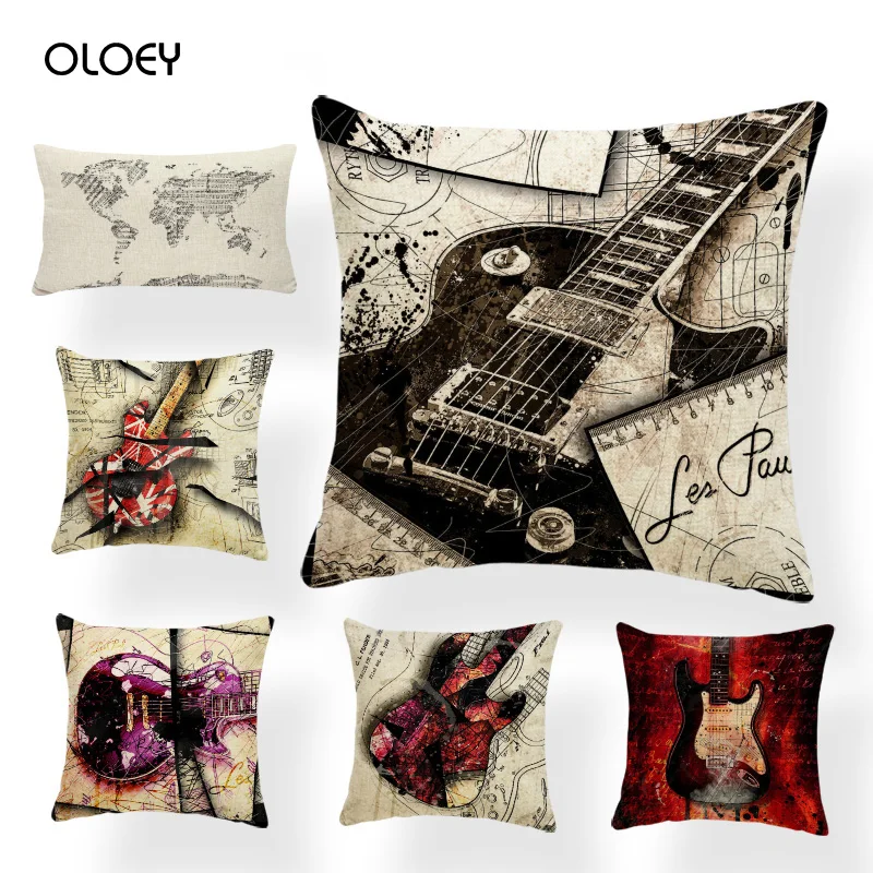 Подушка "Гитара" чехол карта мира музыкальное украшение наволочка большая льняная смесь наволочка украшение для спальни 45x45 см.