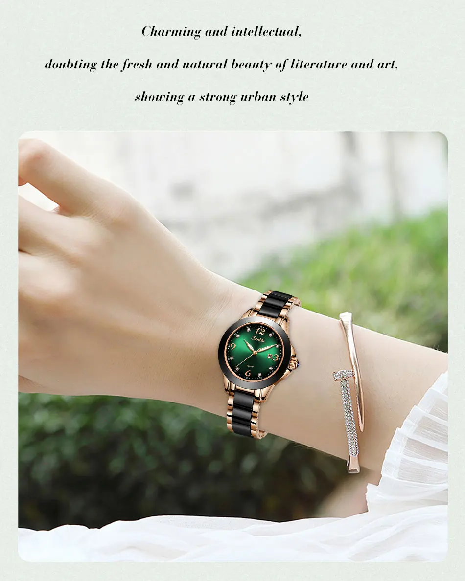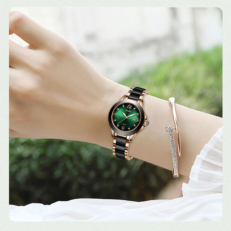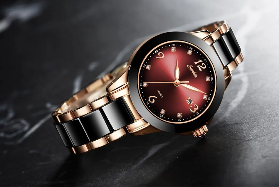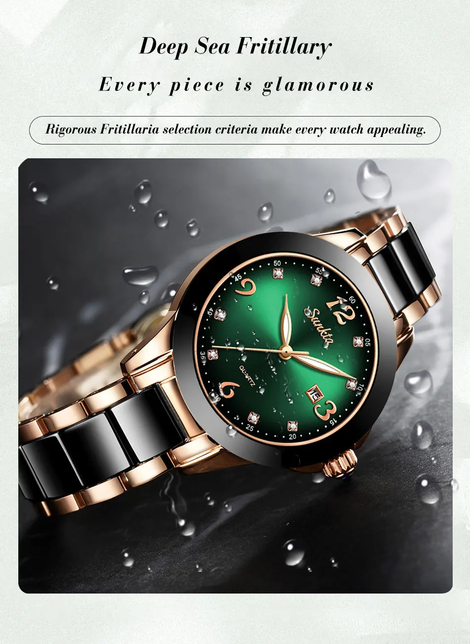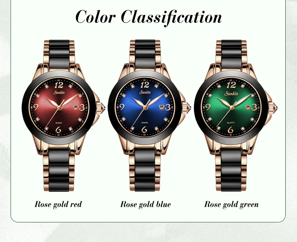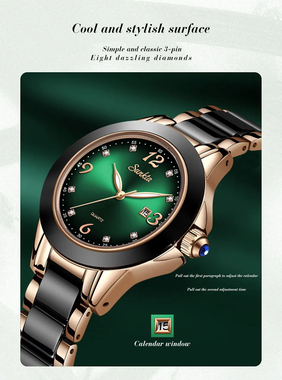 SUNKTA 2022 Модные женские наручные часы Роскошный бренд кристалл платье женские часы Стразы керамические наручные часы кварцевые часы + коробка