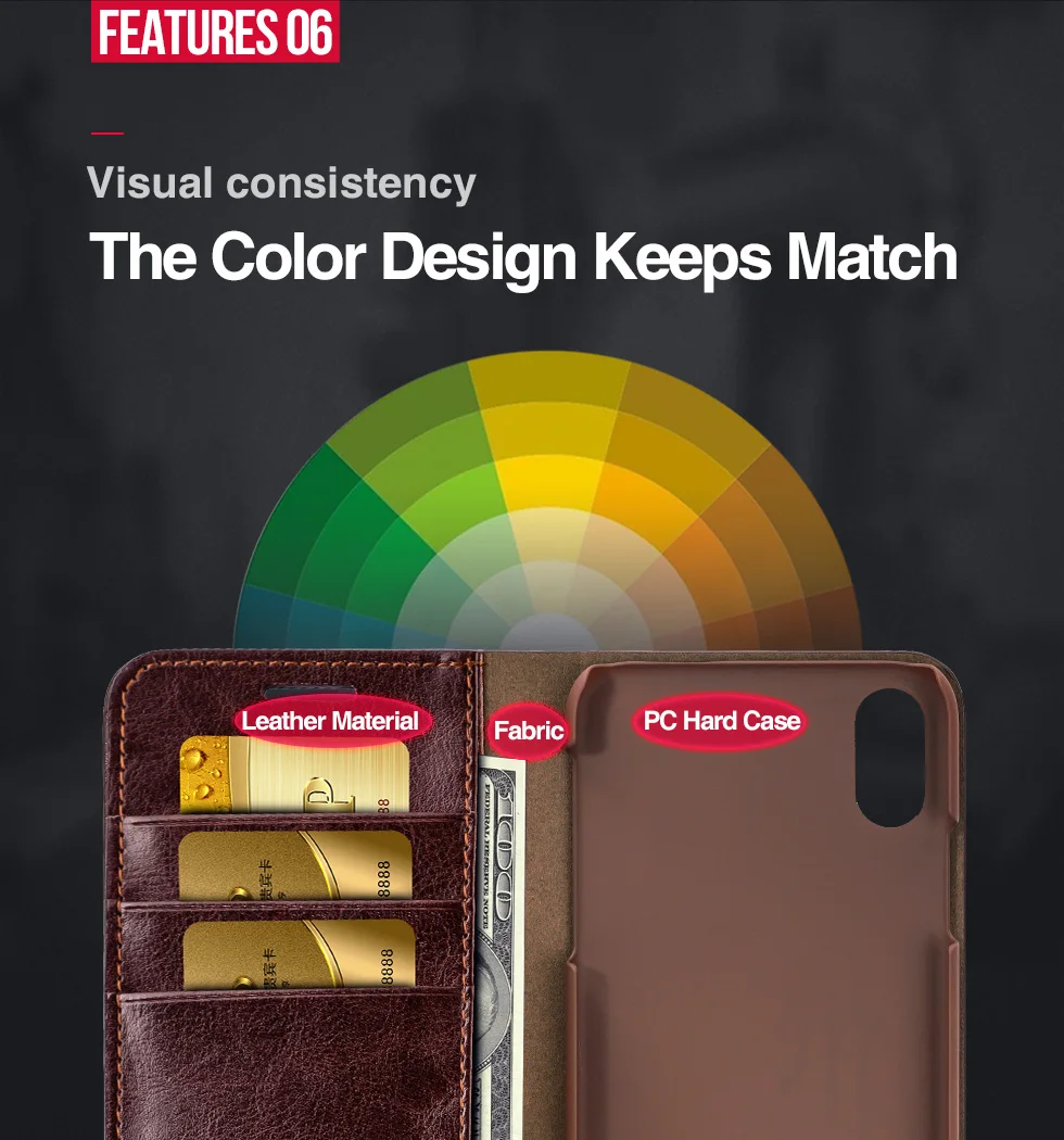 1. Материал: высококачественная искусственная кожа2. 100% ручная работа3. 6 видов модных и модных цветов на выбор4. Внутри слота для карт и очень удобно разместить наличные деньги5. Функция: Отличная защита от грязи, царапин и повреждений вашего телефона6. Оптовая продажа: Поддержка7. Прямая поставка: Поддержка