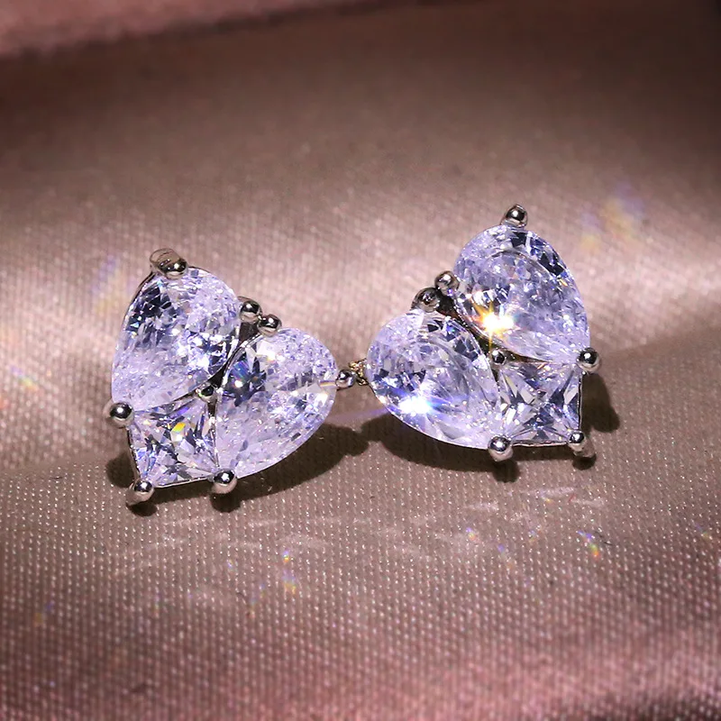 Choucong серьги-гвоздики в форме сердца грушевидной огранки AAAAA c...
