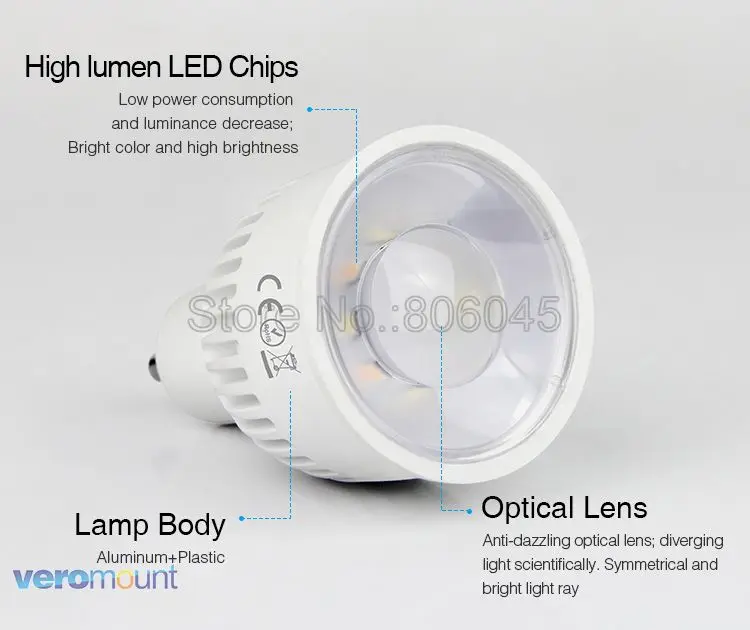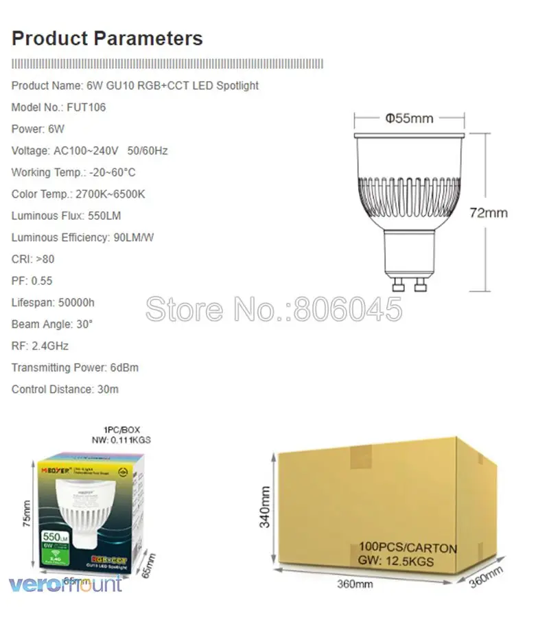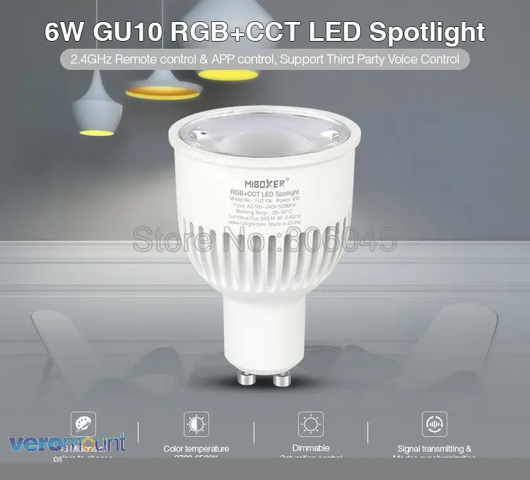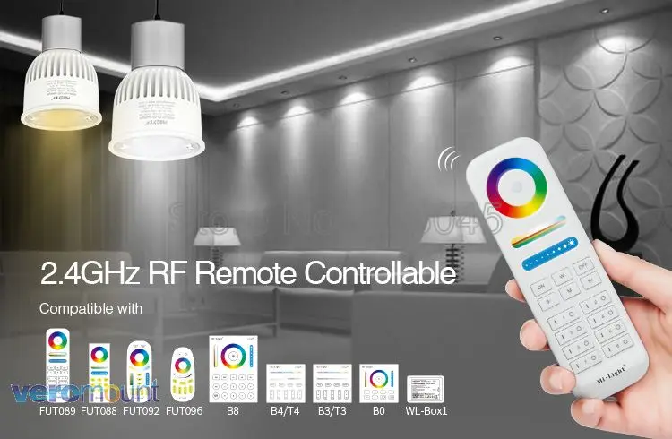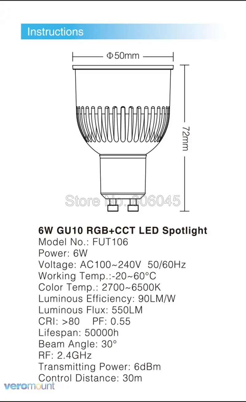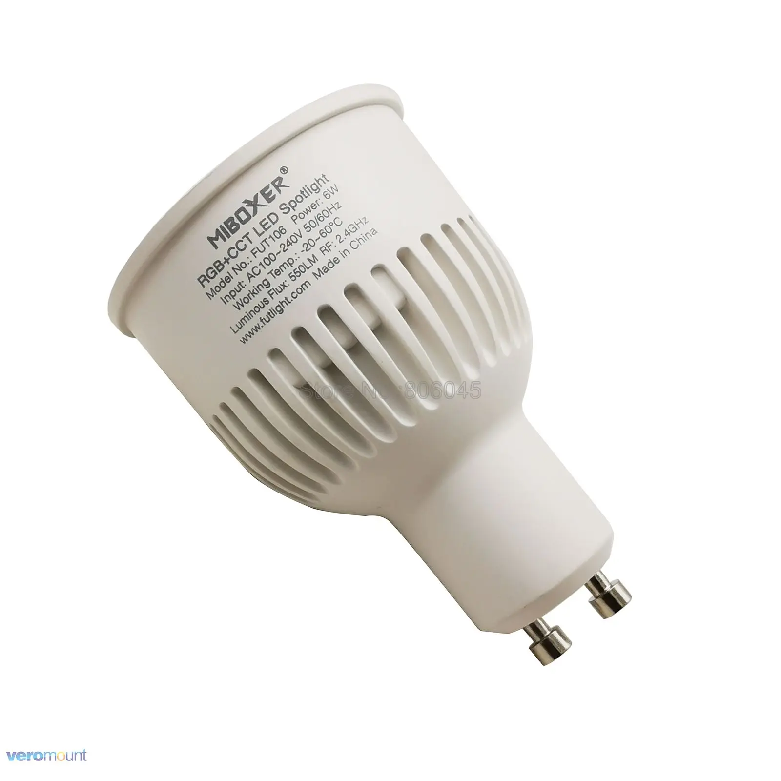 Эту лампу GU10 6 Вт RGB + CCT можно дистанционно управлять с помощью FUT092, FUT089, T4/B4, B8.