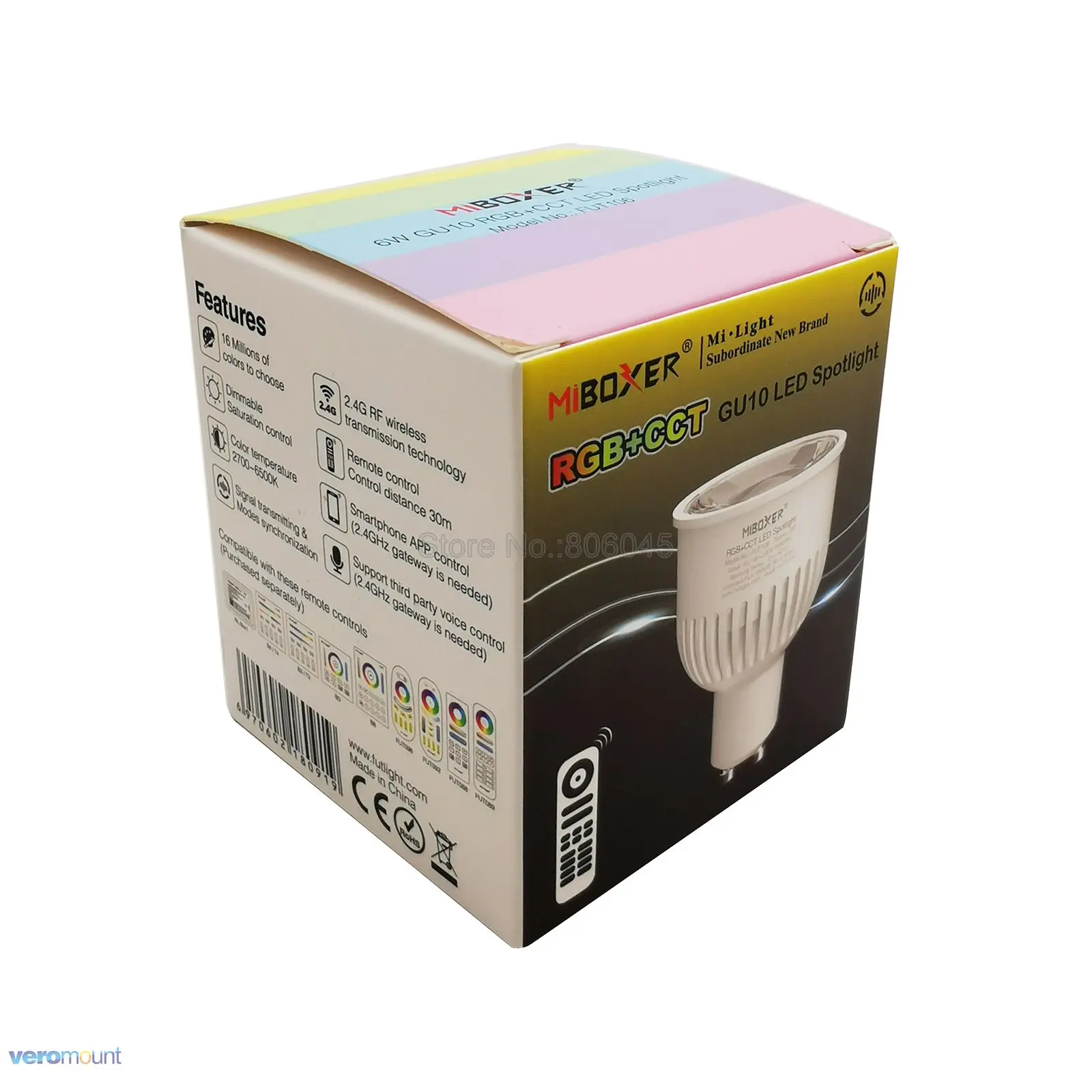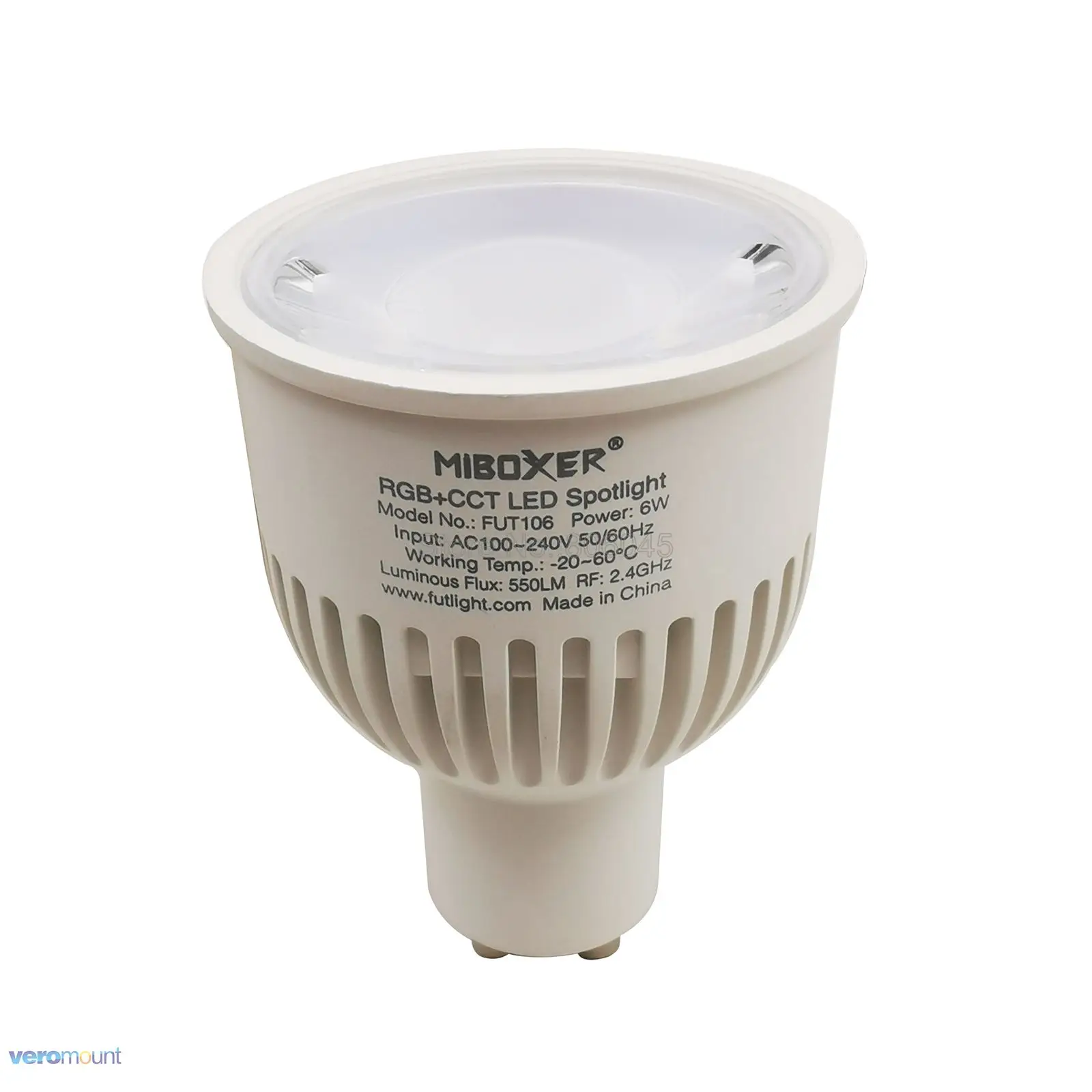 Умная Светодиодная лампа Miboxer с регулируемой яркостью, 6 Вт, GU10, RGB + CCT (2700-6500K), светодиодный прожектор FUT106, 2,4G, дистанционное управление, Wi-Fi, Alexa, Google, голосовое управление