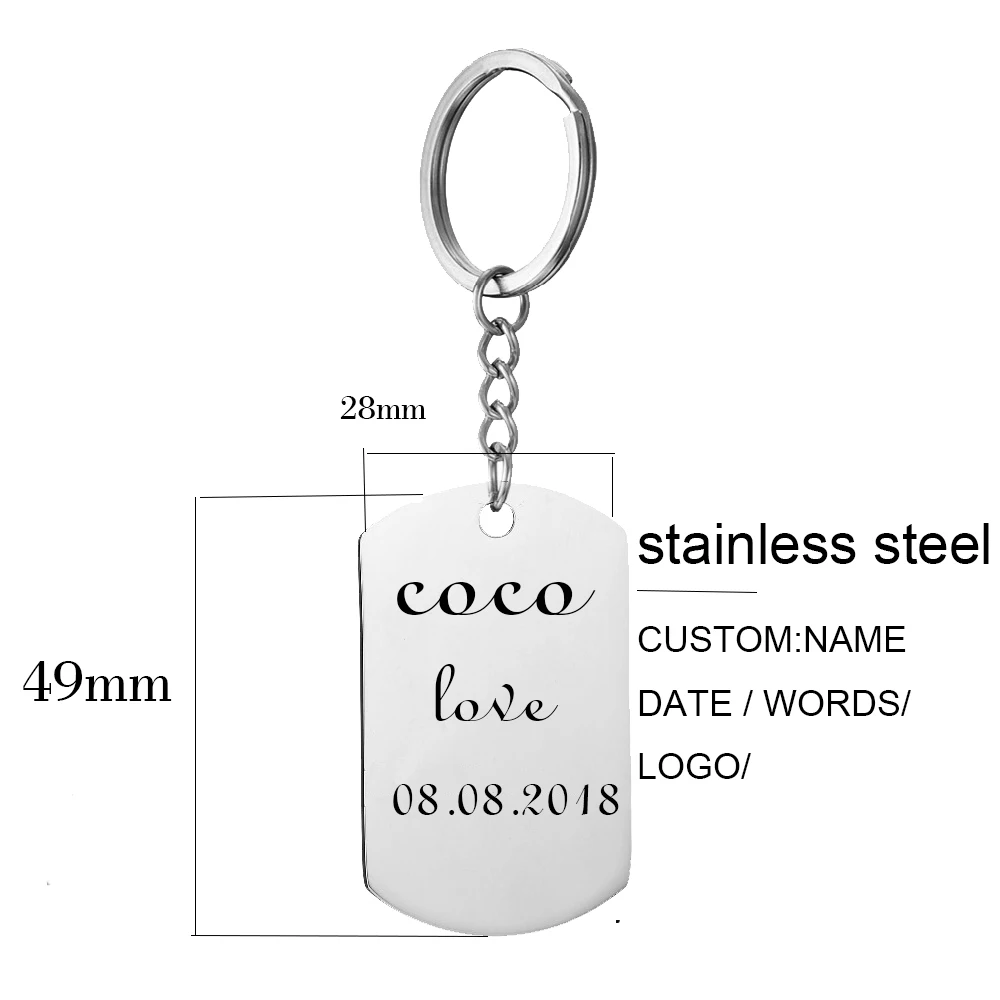 Индивидуальный Круглый квадратный брелок в форме сердца, выгравированные фото имена, брелоки из нержавеющей стали, бирка для собак, брелок, подарок на день рождения