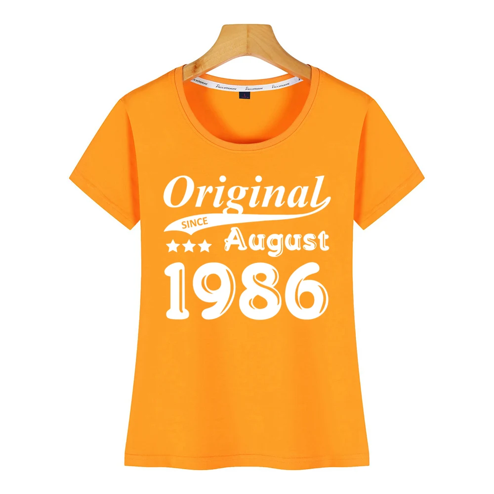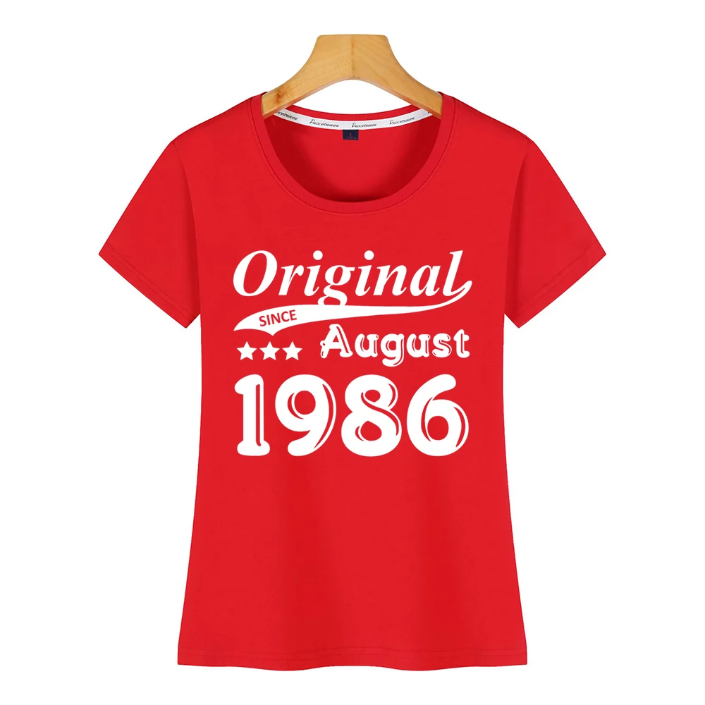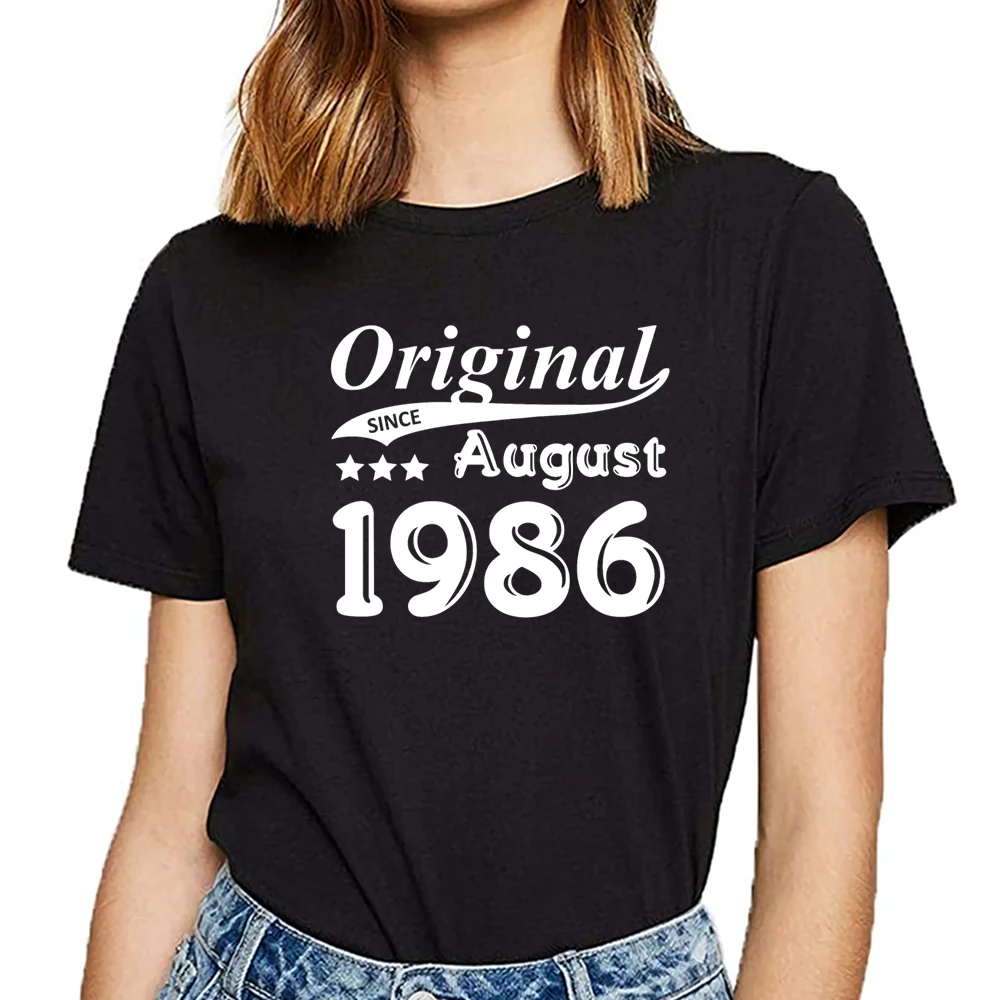 Топы, футболка, Женская оригинальная с августа 1986 года, повседневная черная короткая женская футболка