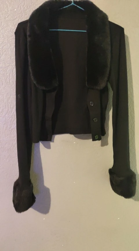 I love it! Amazing quality! Looks exactly like the picture ! I ordered a small but I'm small chested so it fit perfectly. I also love that it's cropped. The fur isn't removable but that's not an issue.