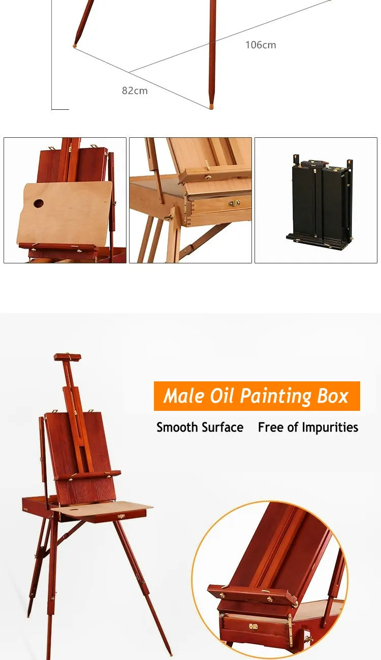 Большой портативный мольберт для рисования масляными красками, деревянный мольберт для рисования