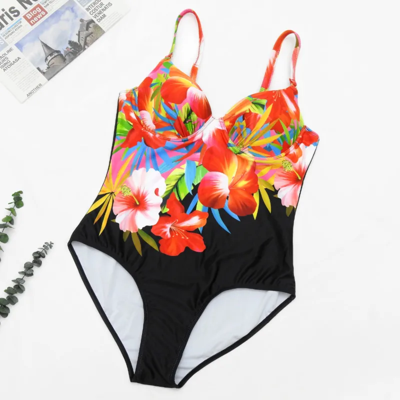 Женские цельные большие купальники с цветочным принтом, закрытый пл...