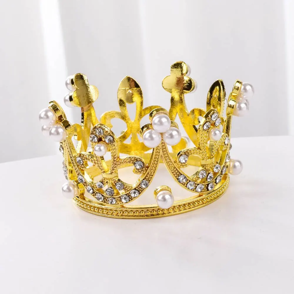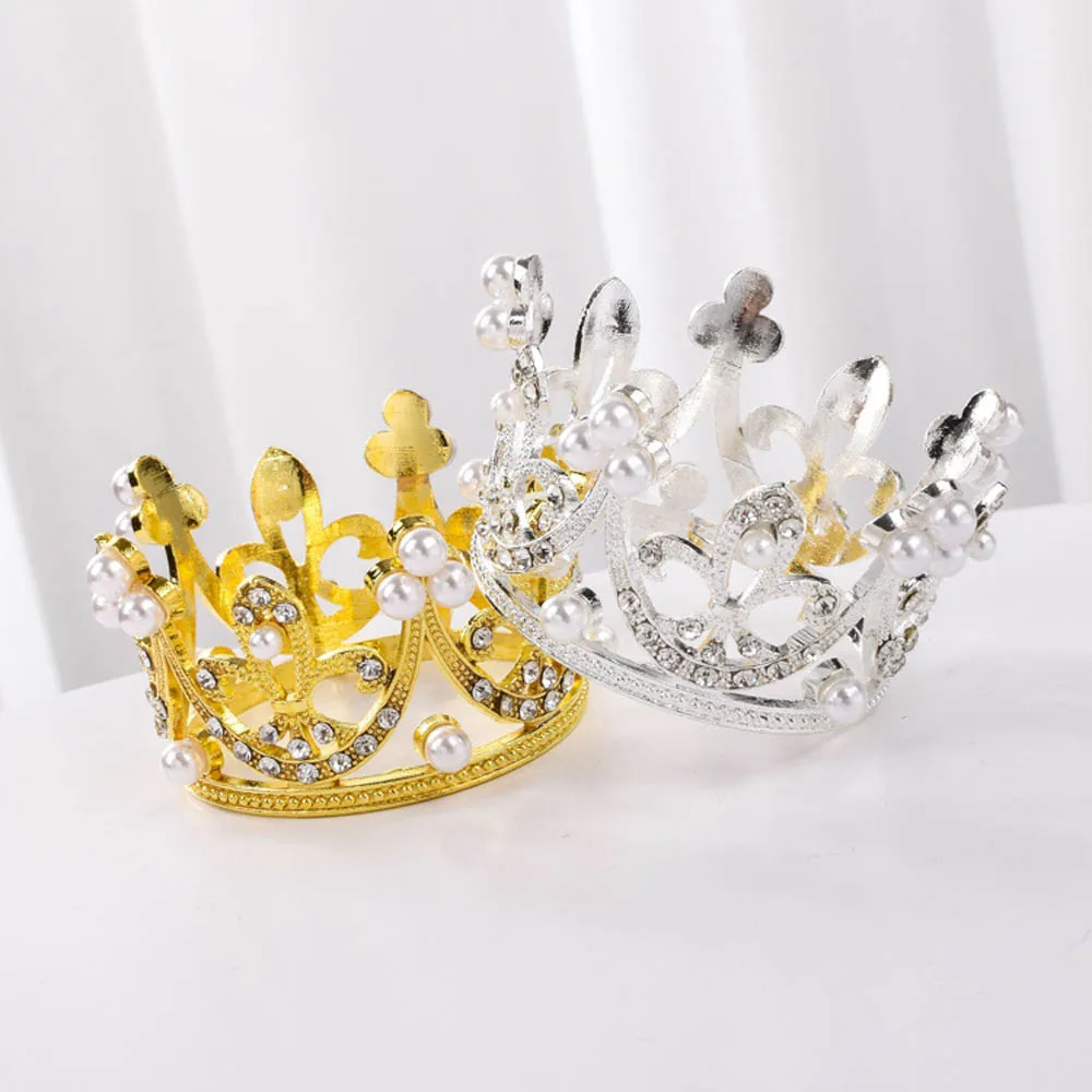 Изящная Королевская корона из золотого и серебряного жемчуга для торта, металлическая ажурная блестящая декорация для торта ручной работы, детские товары для дня рождения, свадьбы