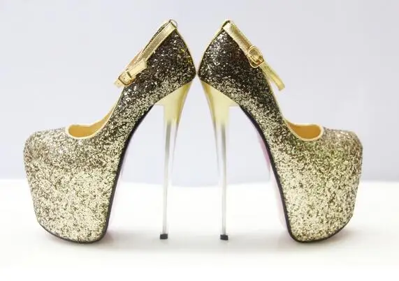Туфли на тонком высоком каблуке 19 см с блестками 34-48 49 50