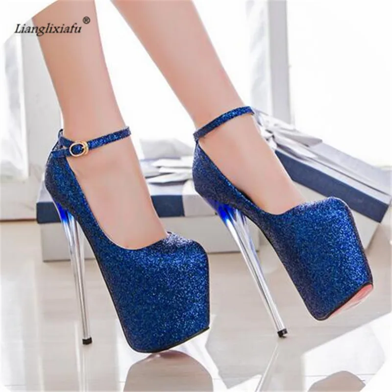 Туфли-лодочки на высоком каблуке 19 см, пикантные блестящие туфли-л...