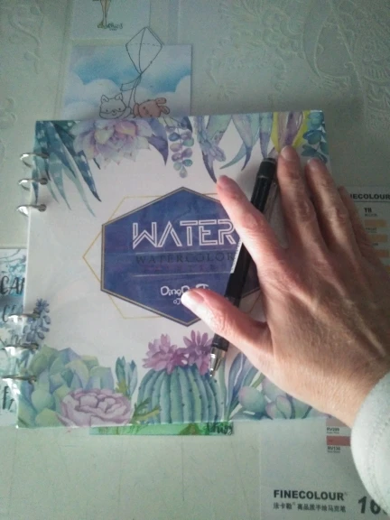 Очень красивый акварельный скетчбук. Бумага суперплотная, зернистая. Удобный размер, на кольцах - можно добавлять бумагу по своему желанию. Упакован был хорошо, пришел в сохранности. Продавец прислал открытку и в подарок наклейки. Большое спасибо! Рекомендую.
