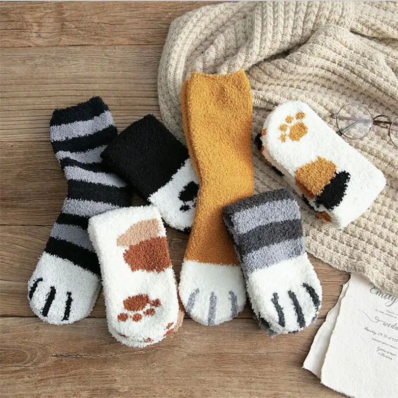 Женские носки в полоску с кошачьими лапами, толстые носки из коралл...