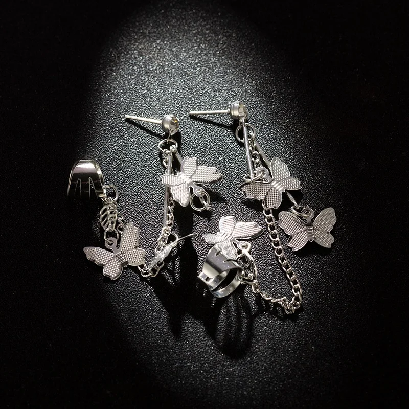 Серьги-клипсы ручной работы в виде бабочки с Красной кисточкой из циркония, двойные серьги-клипсы для ногтей с кристаллами