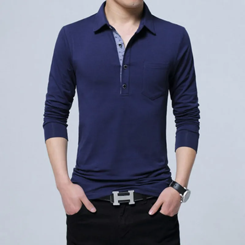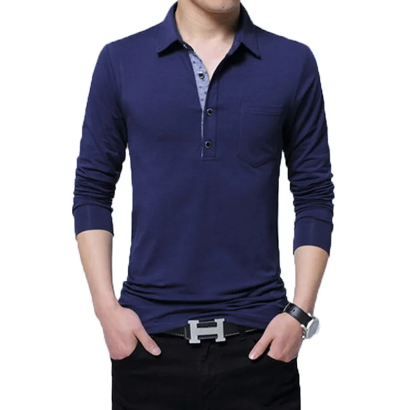 Новая рубашка поло мужская с длинным рукавом хлопок поло Мужская мода Повседневная тонкая рубашка поло мужская размера плюс Однотонная футболка уличная одежда полная