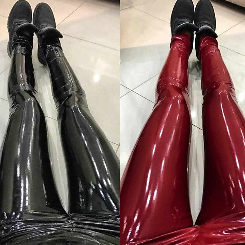 Размера плюс, пикантные легкие брюки из искусственной кожи, женские кожаные брюки, латексные штаны брюки с высокой талией, женские Стрейчевые брюки