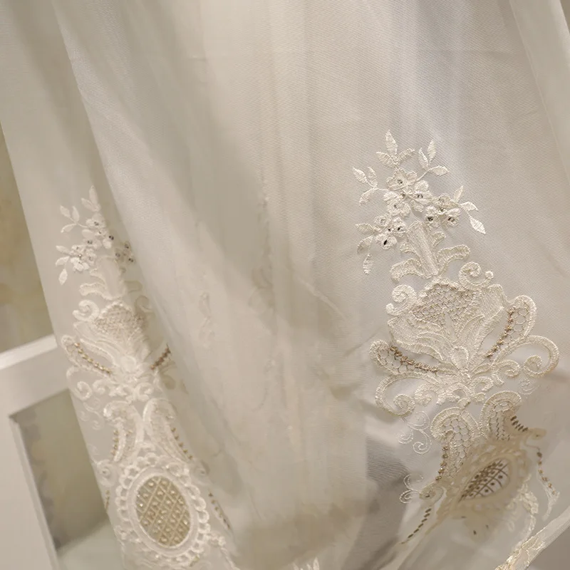 Роскошный топ в европейском и американском стиле, белая вуаль с вышивкой, занавеска для гостиной, высокое качество, тюль для спальни, отеля