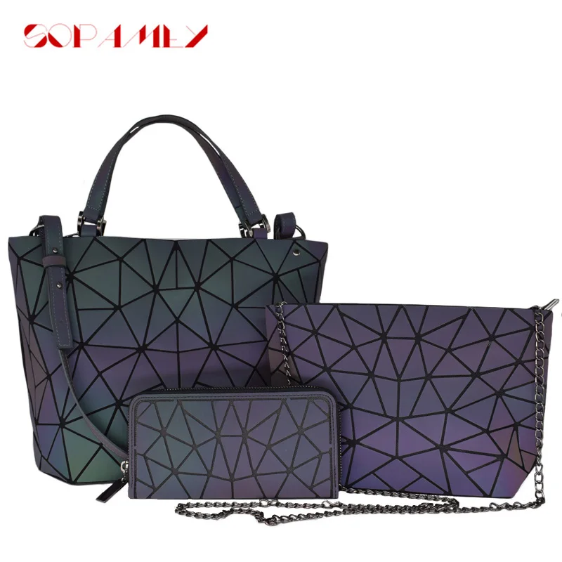 Комплект из 3 предметов, женская сумка на плечо, Роскошная сумочка, дизайнерская складная сумка через плечо, Женский кошелек и кошелек для дам, светящаяся цветная сумка-тоут