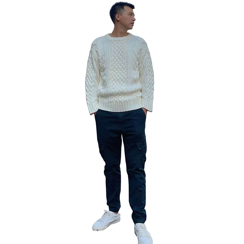 Мужской пуловер, зимний мягкий удобный шерстяной свитер, пальто, теплый вязаный вручную высококачественный Бежевый свитер, 2021