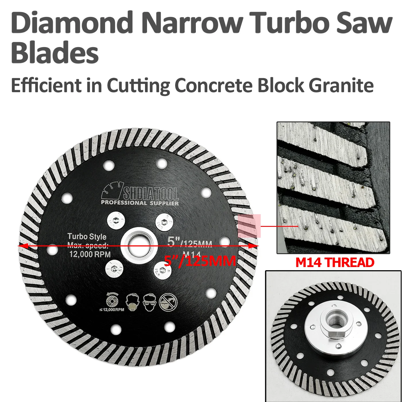 Режущий диск SHDIATOOL M14, с фланцем диаметром 125 мм5 дюймов, с узким турбо лезвием, для гранита, мрамора, бетона, каменной кладки