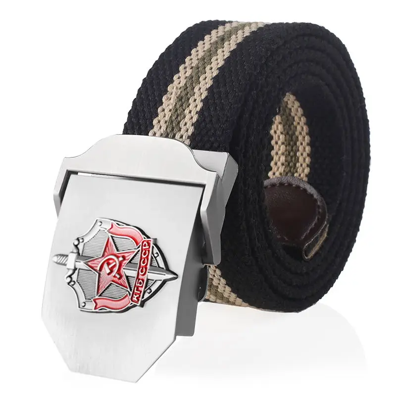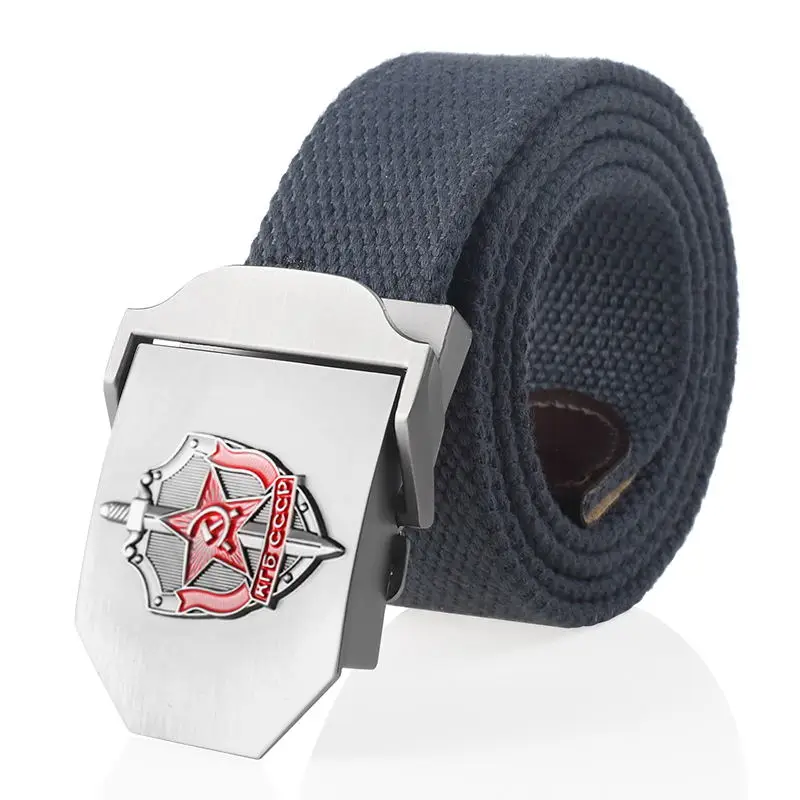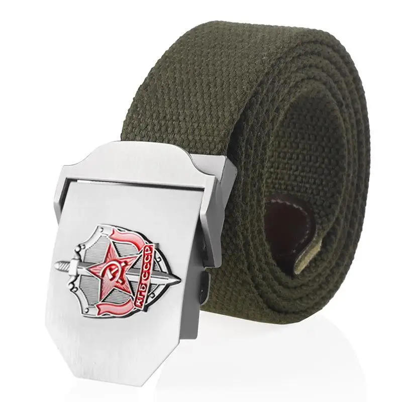 SupSindy мужской холщовый ремень 3D советская слава КГБ с металлической пряжкой, джинсовые ремни для мужчин, CCCP, армейские военные тактические ремни, мужской ремешок, черный