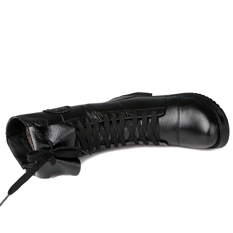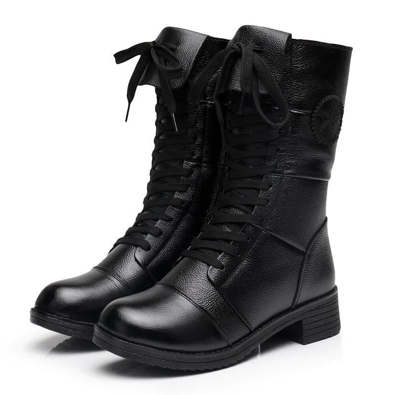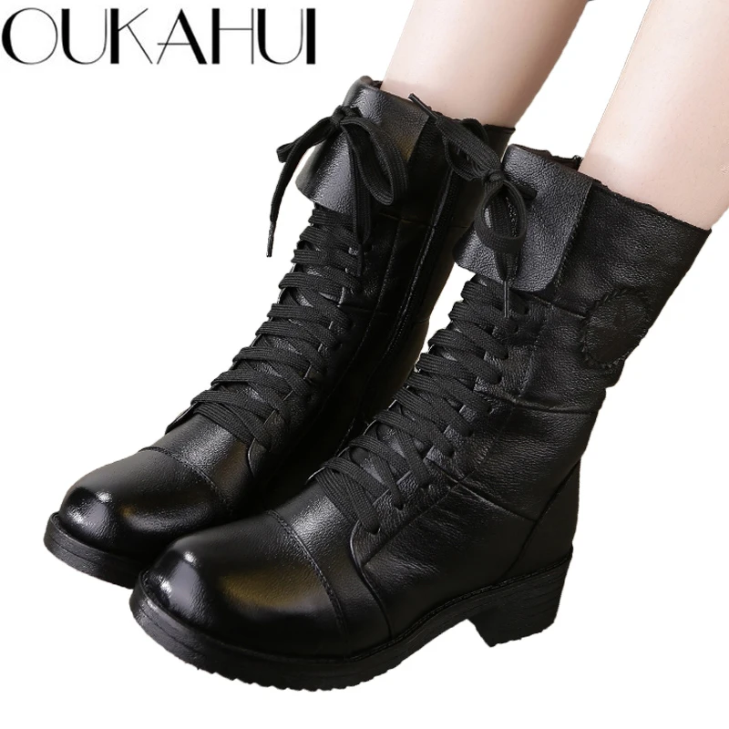 OUKAHUI2020 Зимние теплые плюшевые Высокие Ботинки martin; женские весенние рыцарские сапоги из натуральной кожи в британском стиле; женские ботинки средней высоты на шнуровке