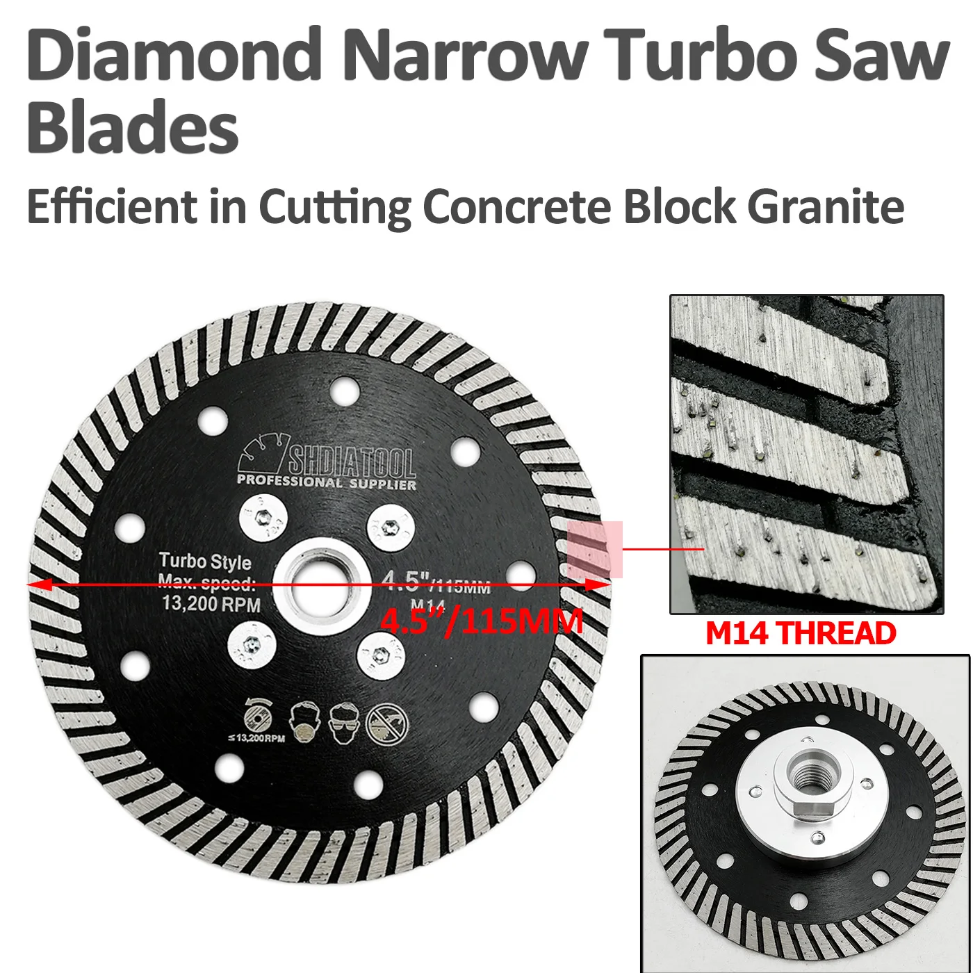 SHDIATOOL M14 фланец диаметром 115 мм4,5 дюйма Алмазный горячепрессованный узкий турбо-диск режущий диск для гранита мрамора бетона кирпичной кладки