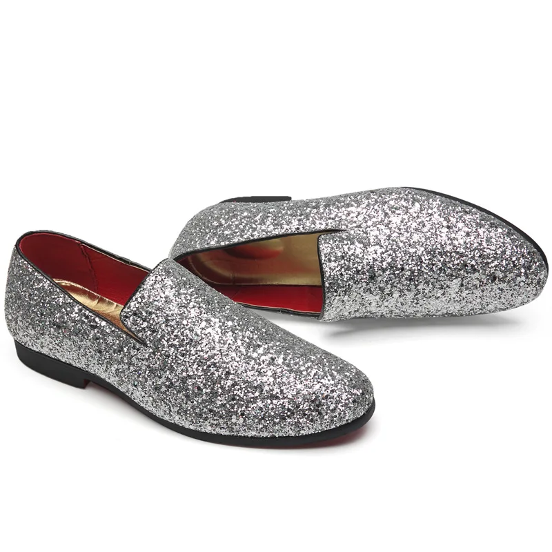 Брендовая обувь с блестками; Мужские роскошные дизайнерские лоферы; Мужская обувь в британском стиле; Цвет серебристый, золотой; Мужская повседневная обувь; Большие размеры; Zapatos Hombre