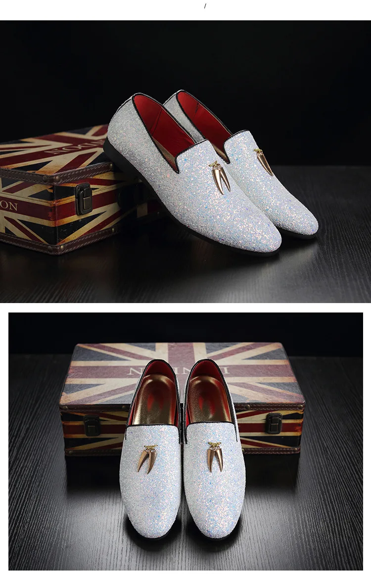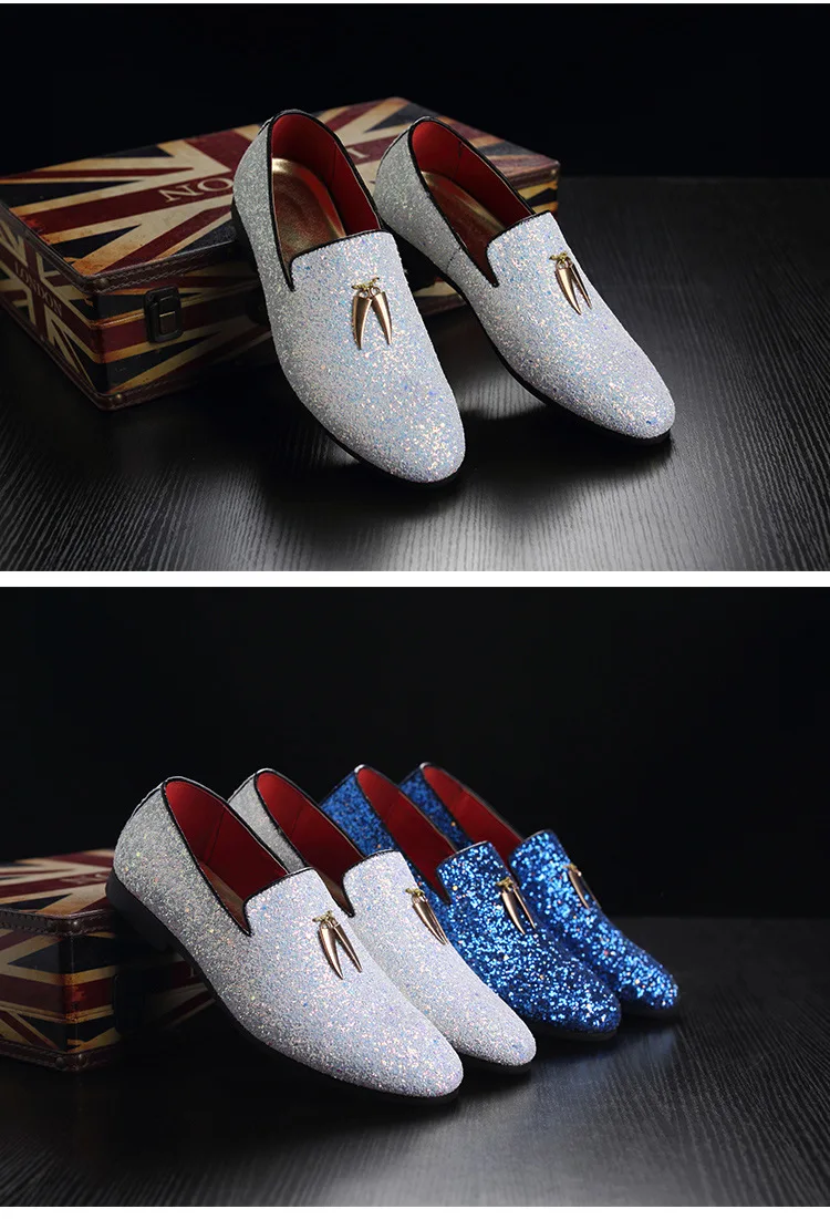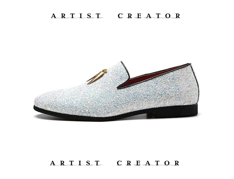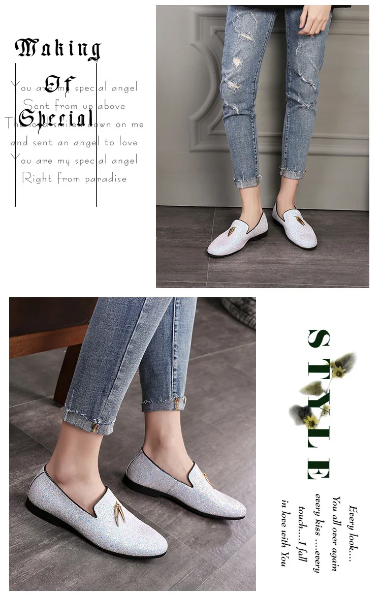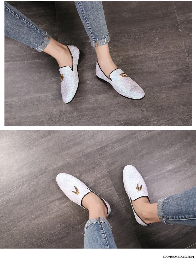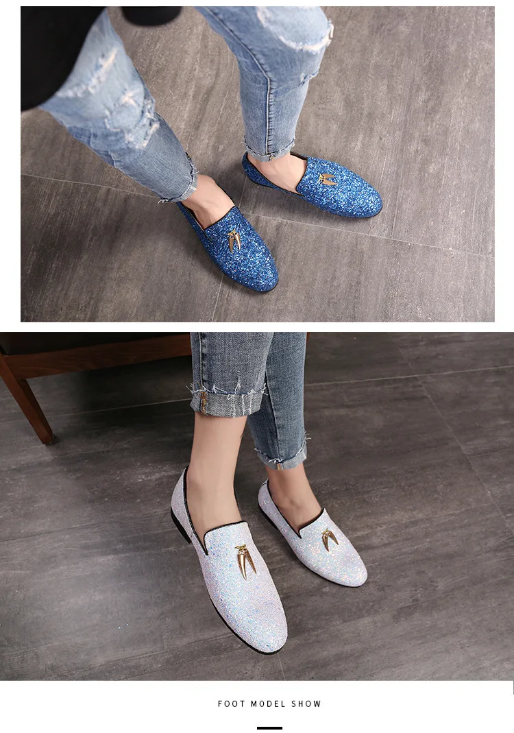 Мокасины мужские, без шнуровки, с блестками, большие размеры 38-48, мужская обувь на плоской подошве