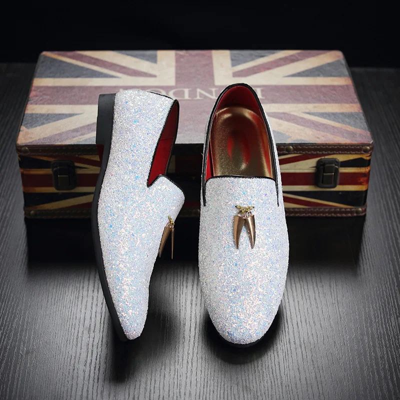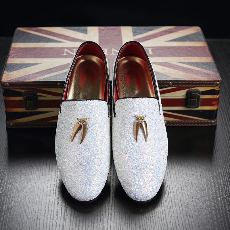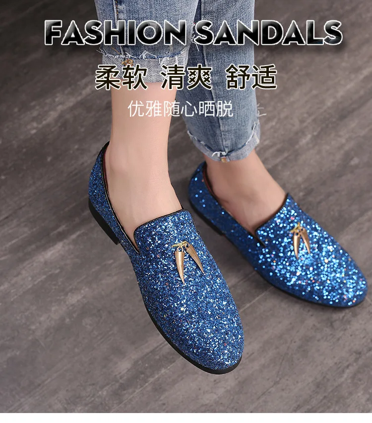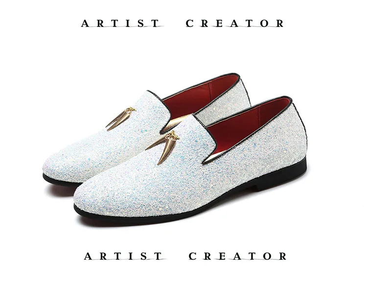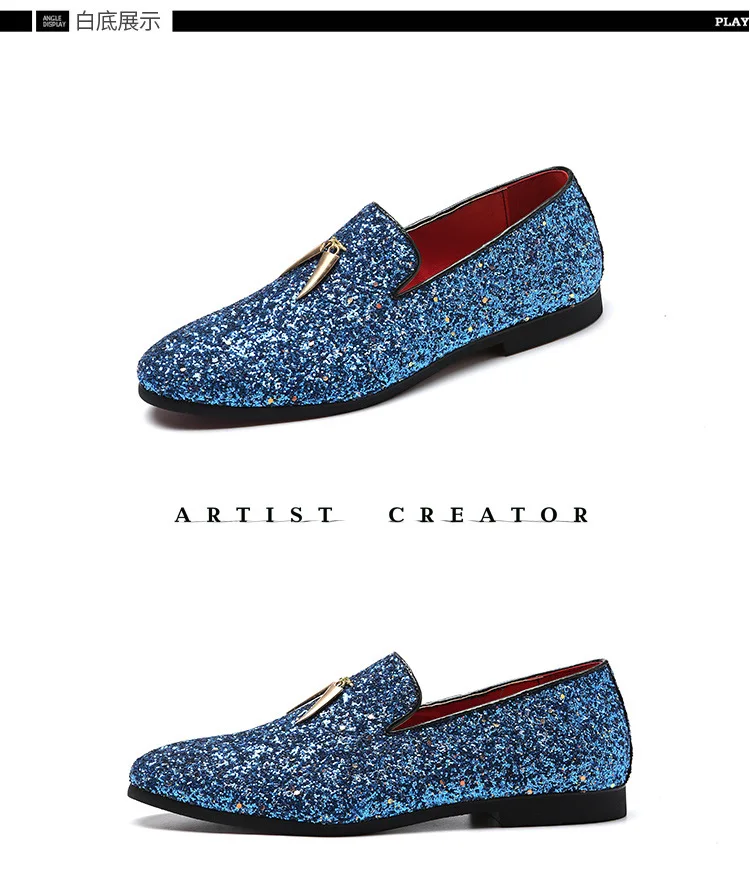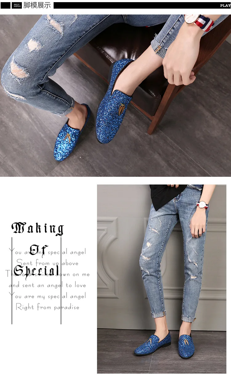 Мокасины мужские, без шнуровки, с блестками, большие размеры 38-48, мужская обувь на плоской подошве