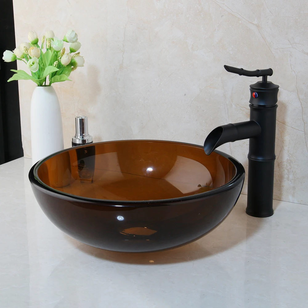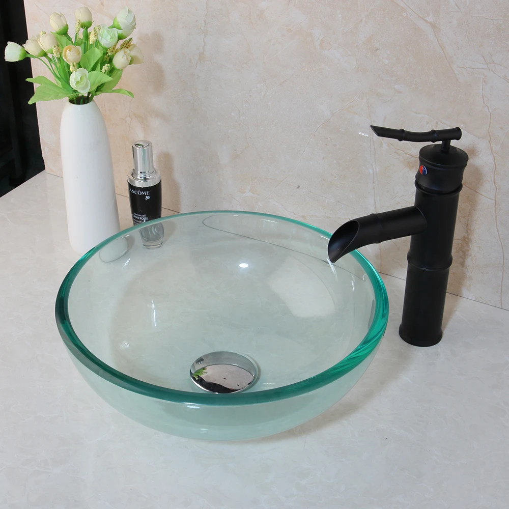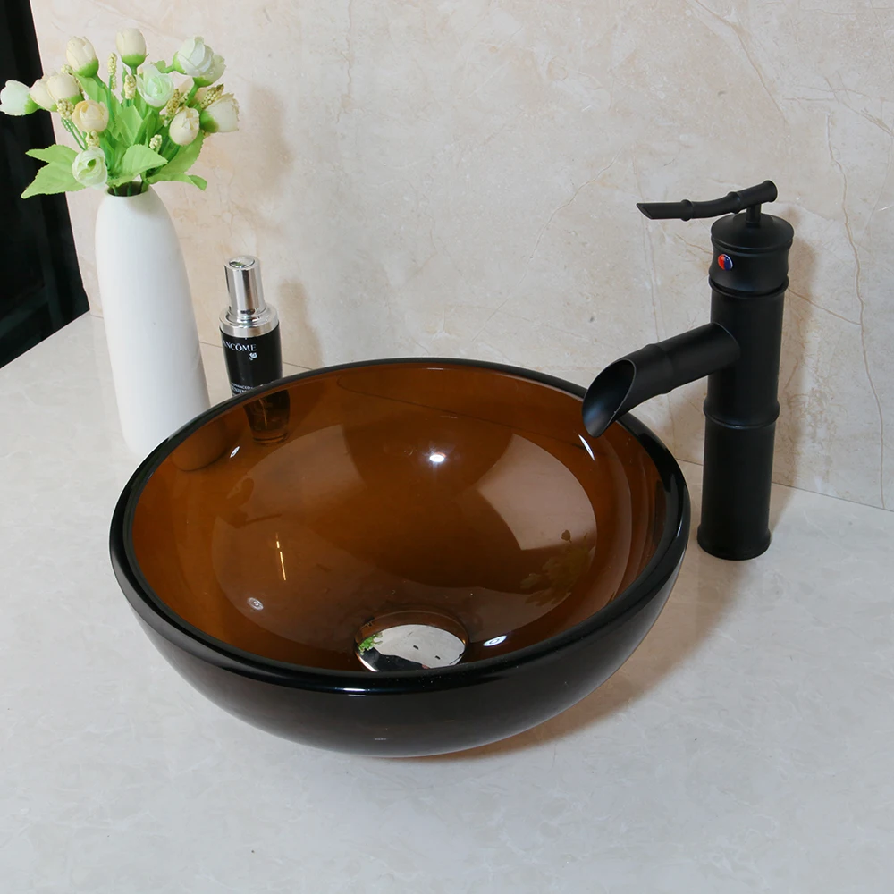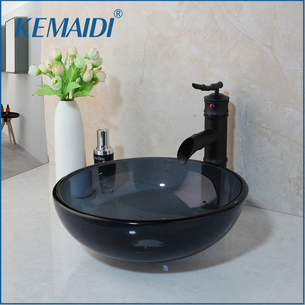 KEMAIDI умывальника закаленное стекло Ручная роспись Совмещенный ванной Ванна Объединить Раковина Chrome латунный смеситель для раковины Tap Bamboo кран