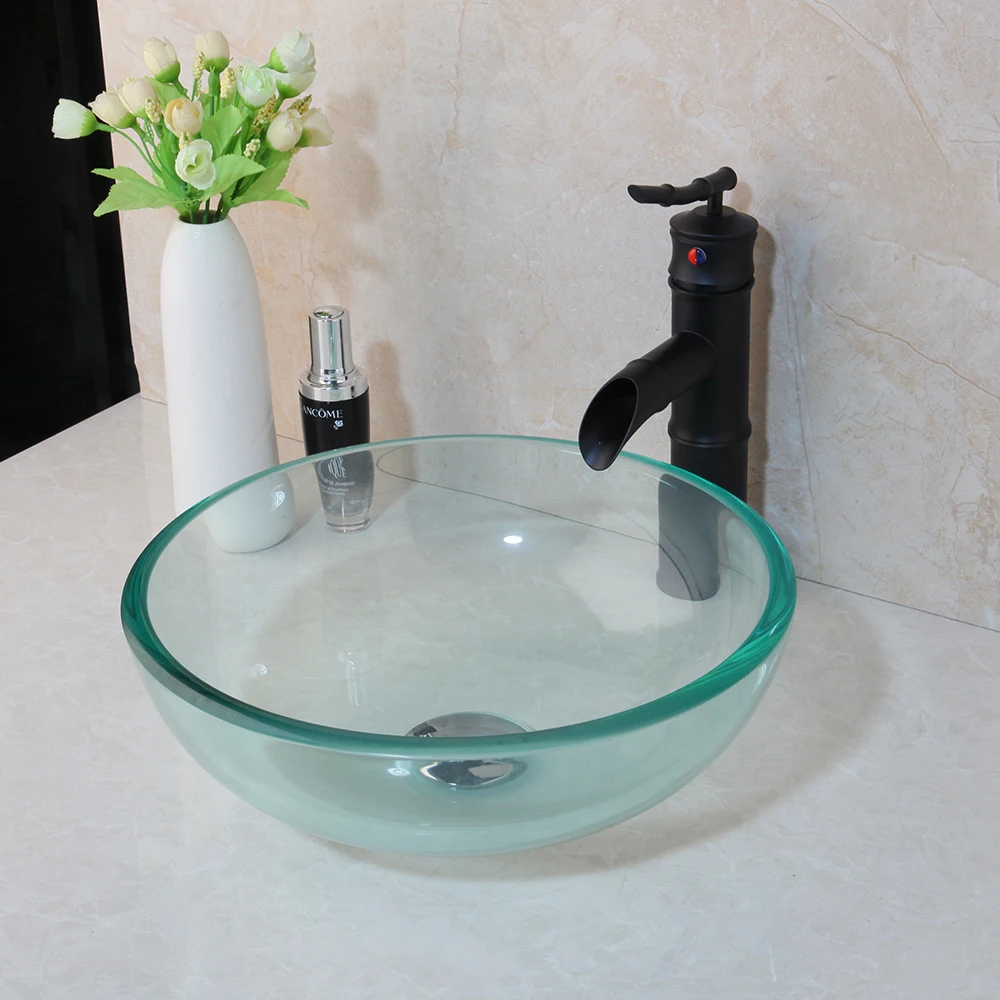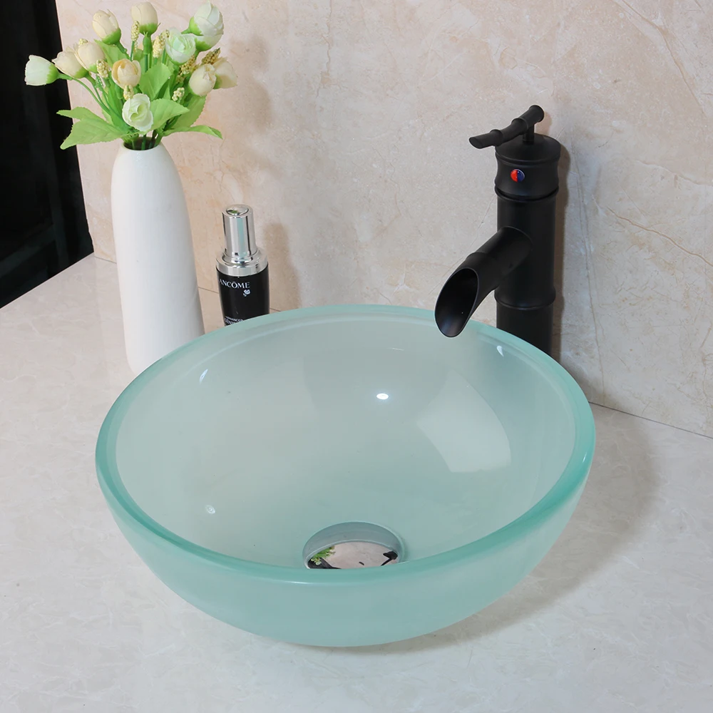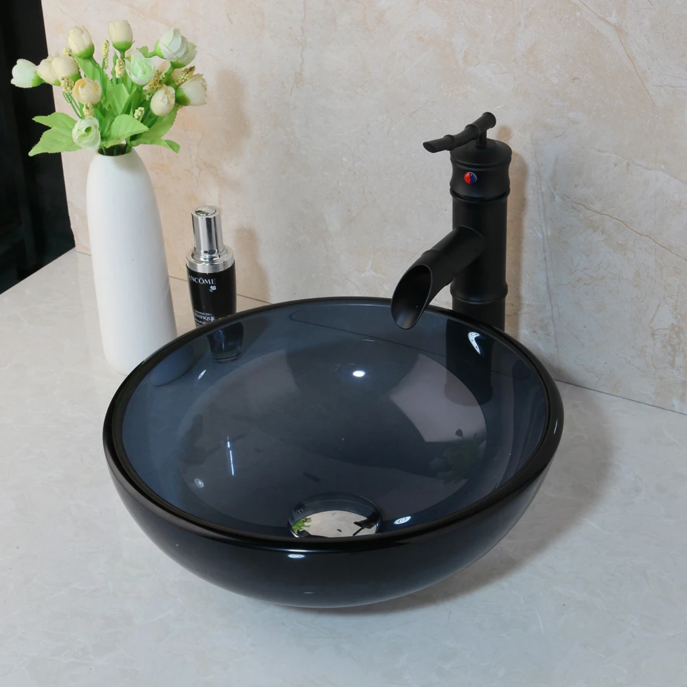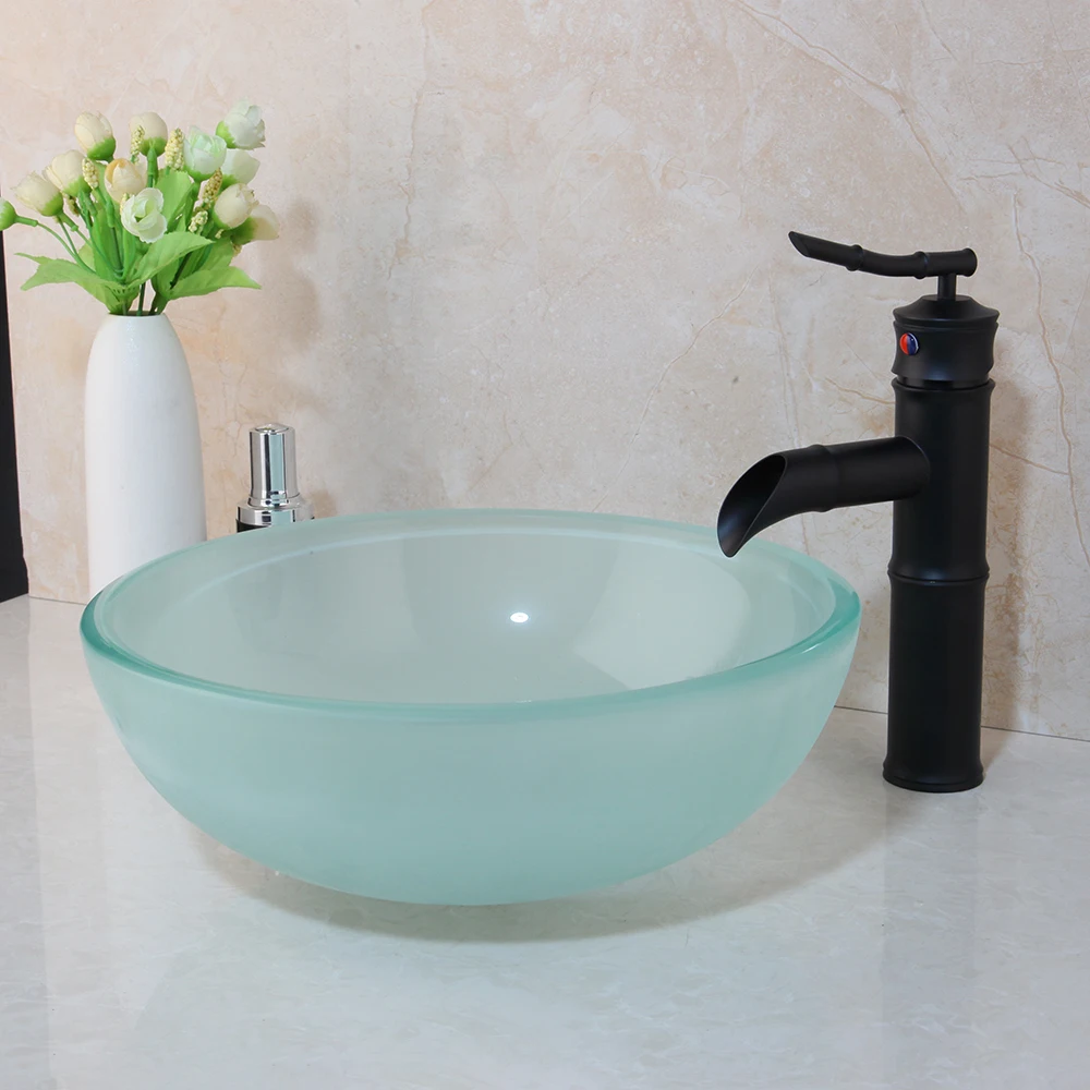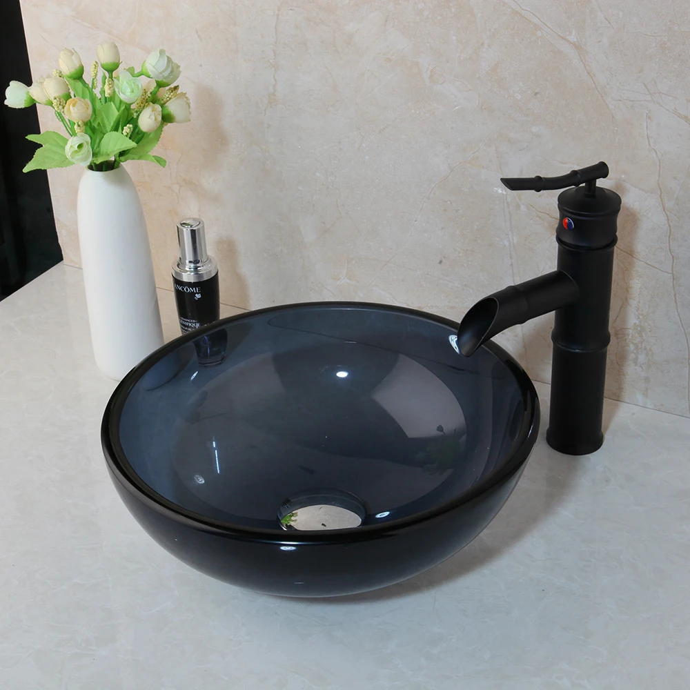 KEMAIDI умывальника закаленное стекло Ручная роспись Совмещенный ванной Ванна Объединить Раковина Chrome латунный смеситель для раковины Tap Bamboo кран