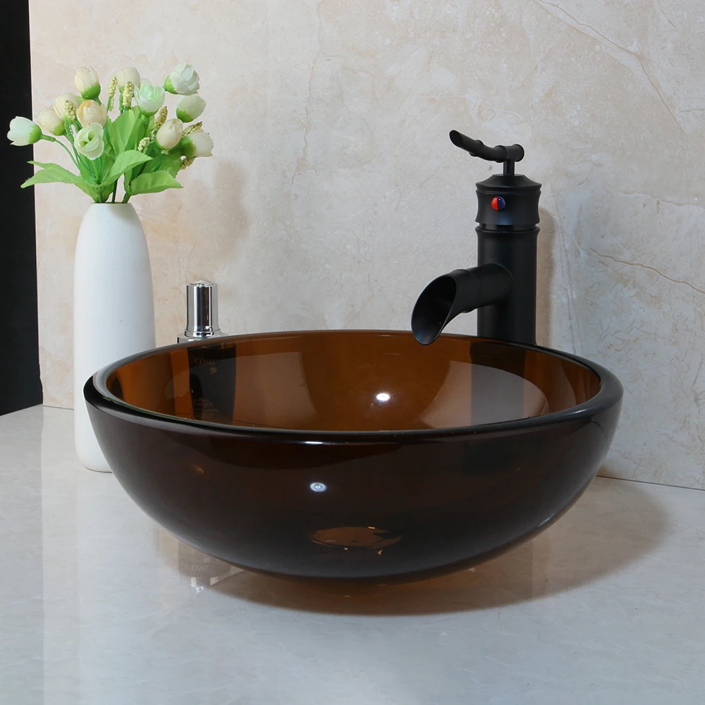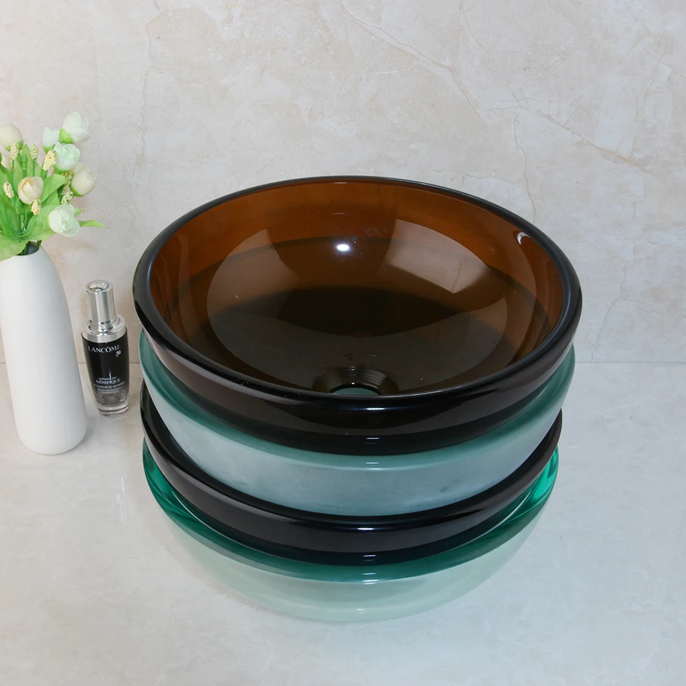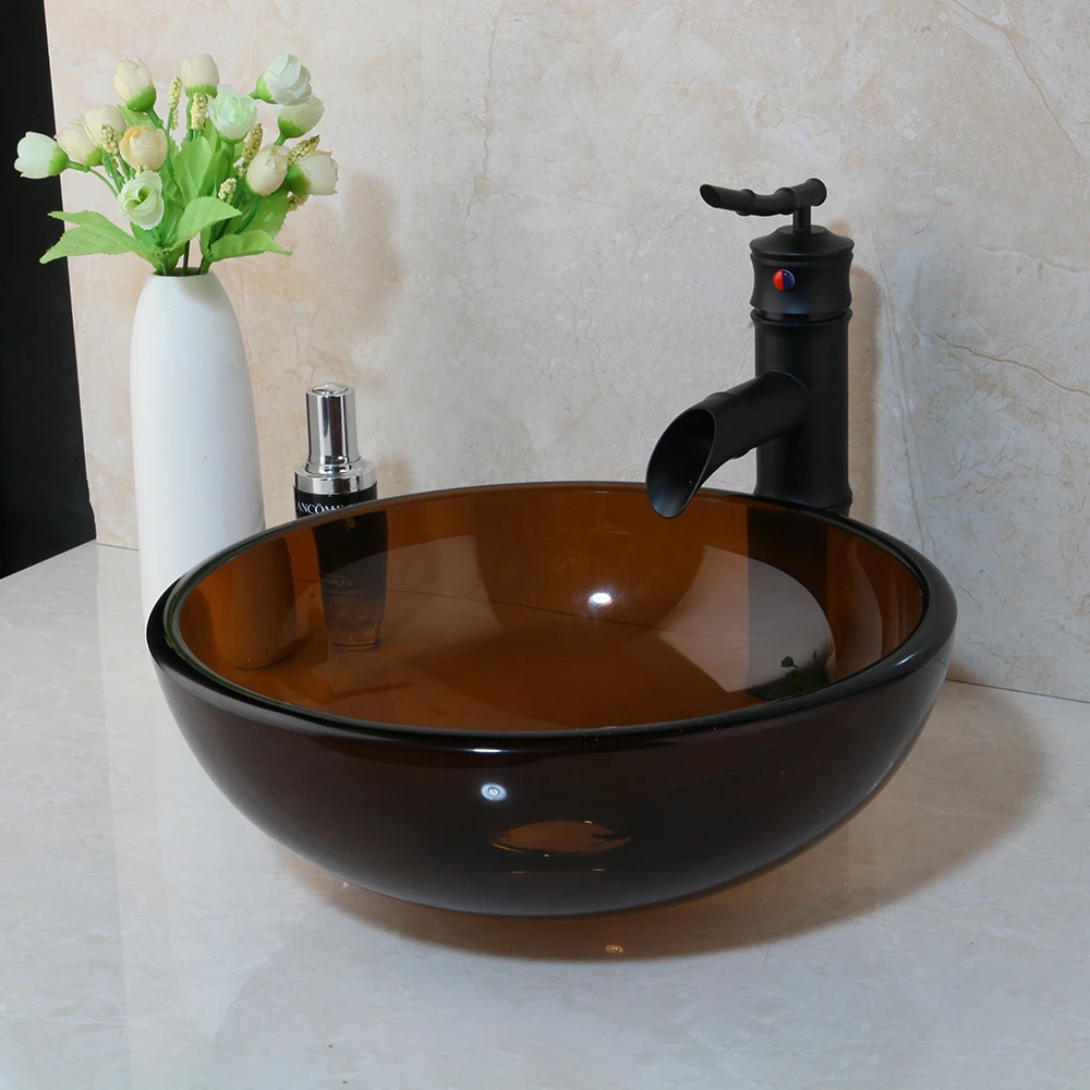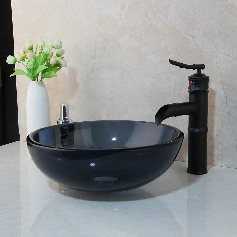 KEMAIDI умывальника закаленное стекло Ручная роспись Совмещенный ванной Ванна Объединить Раковина Chrome латунный смеситель для раковины Tap Bamboo кран