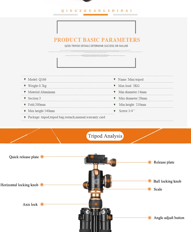 Q166 портативный компактный настольный легкий мини-штатив для макросъемки с шаровой головкой для видеокамеры Canon Nikon Sony DSLR