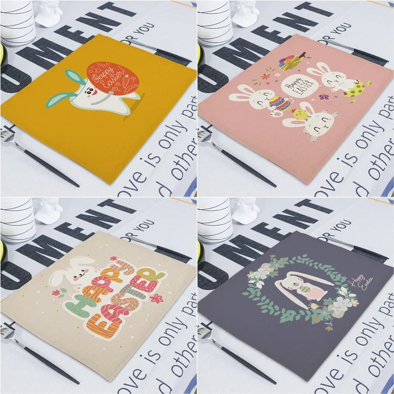 Счастливые Пасхи свадебные салфетки милый кролик обеденный стол коврик подставки для напитков бельевые прокладки кухонные коврики салфетки Servilleta De Tela