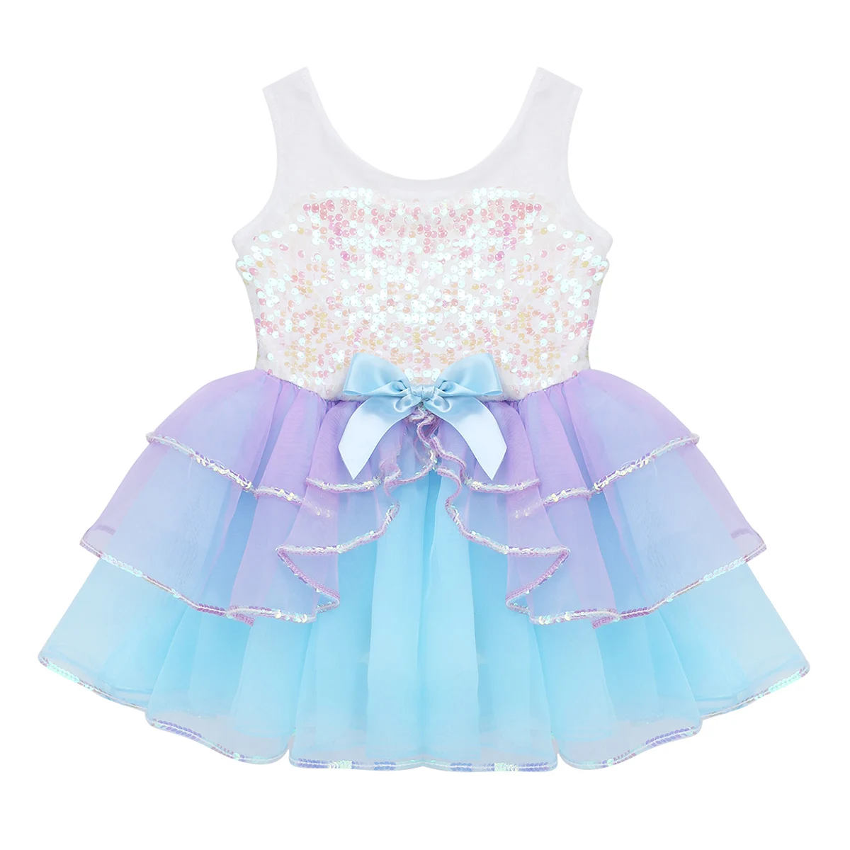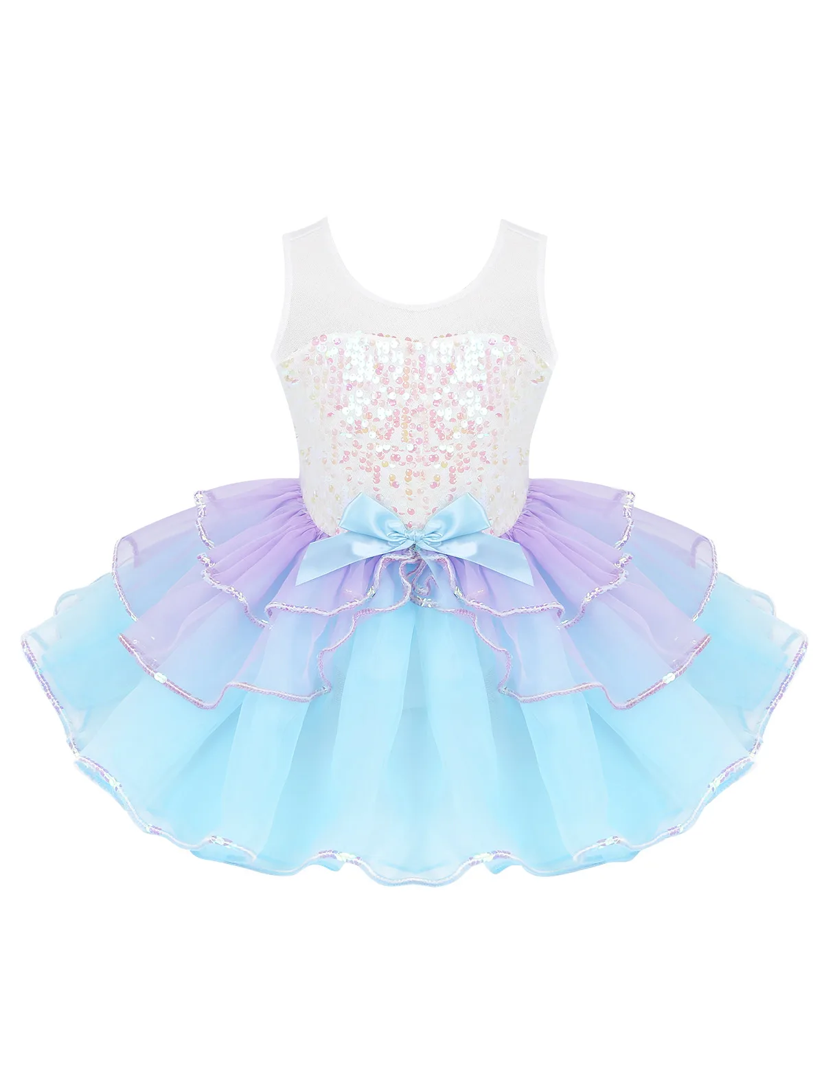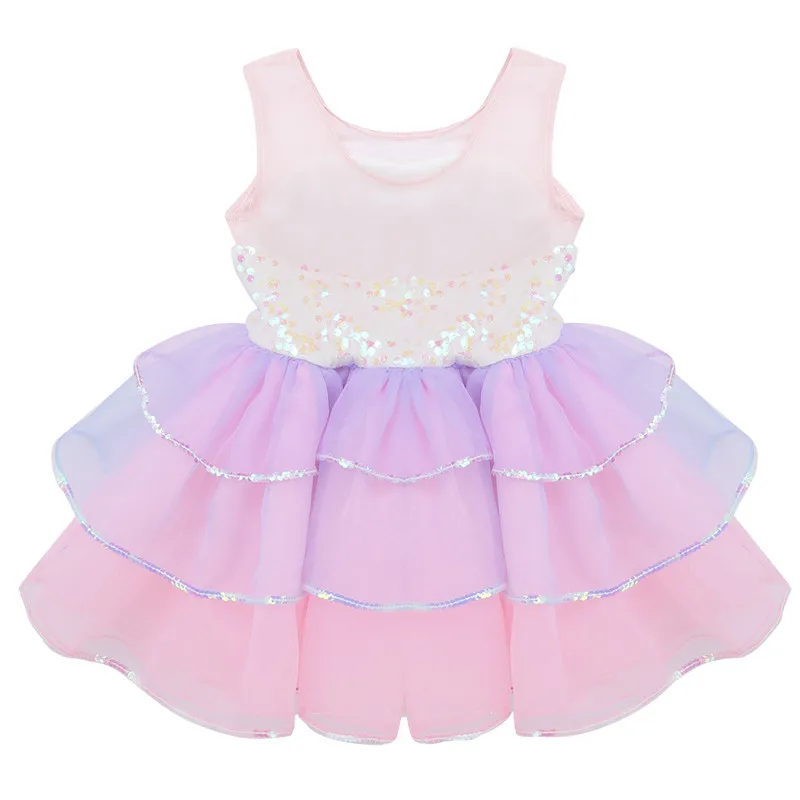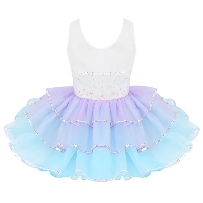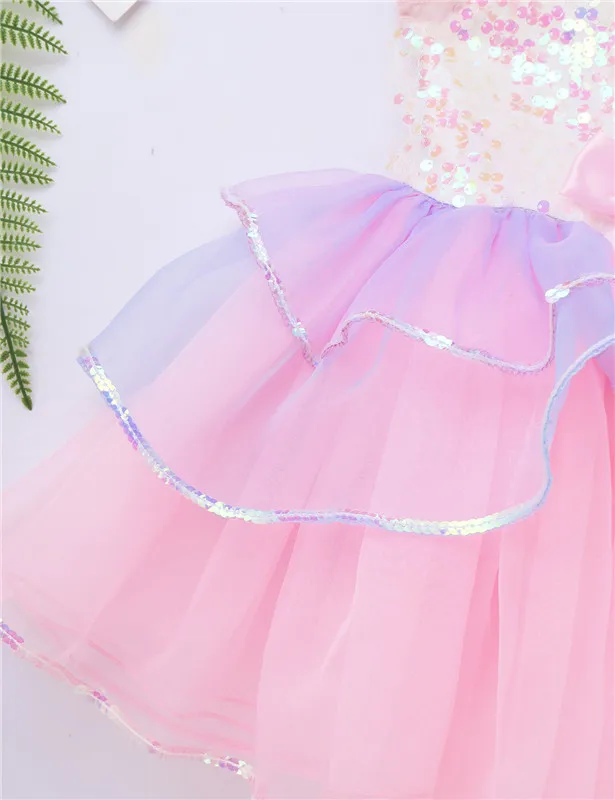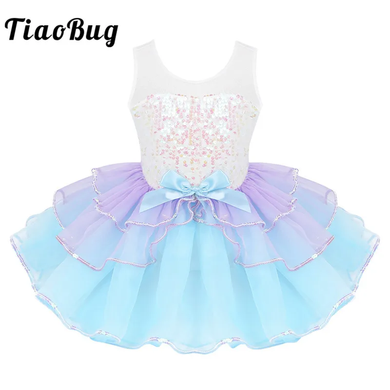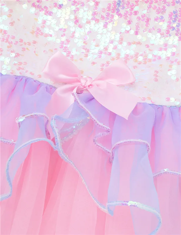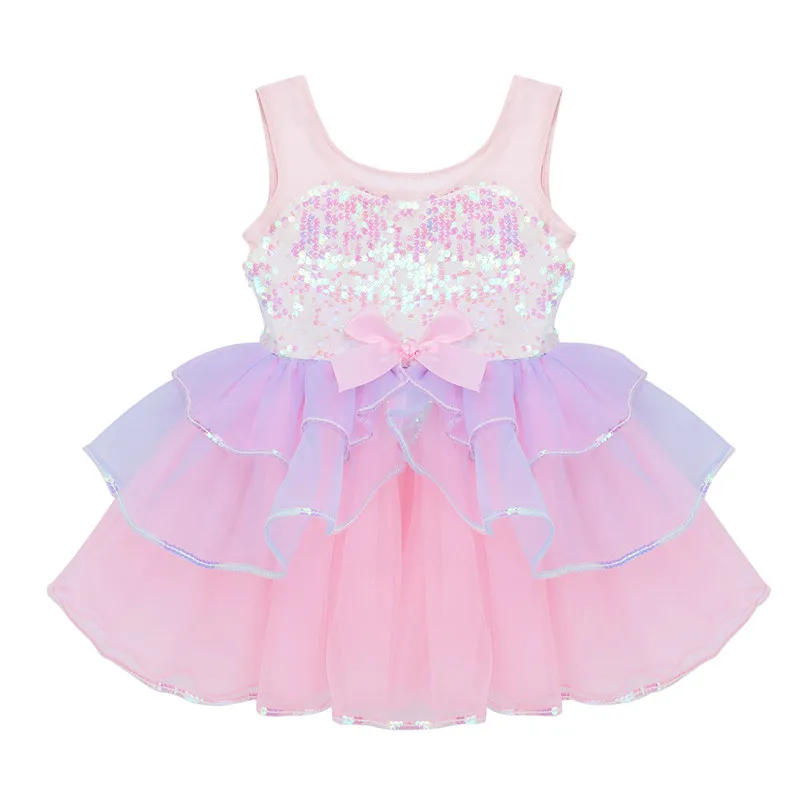 Балетное платье-пачка с блестками, детское балетное трико для девочек, танцевальная одежда, Сетчатое Тюлевое танцевальное платье без рукавов с бантом, костюм для выступления