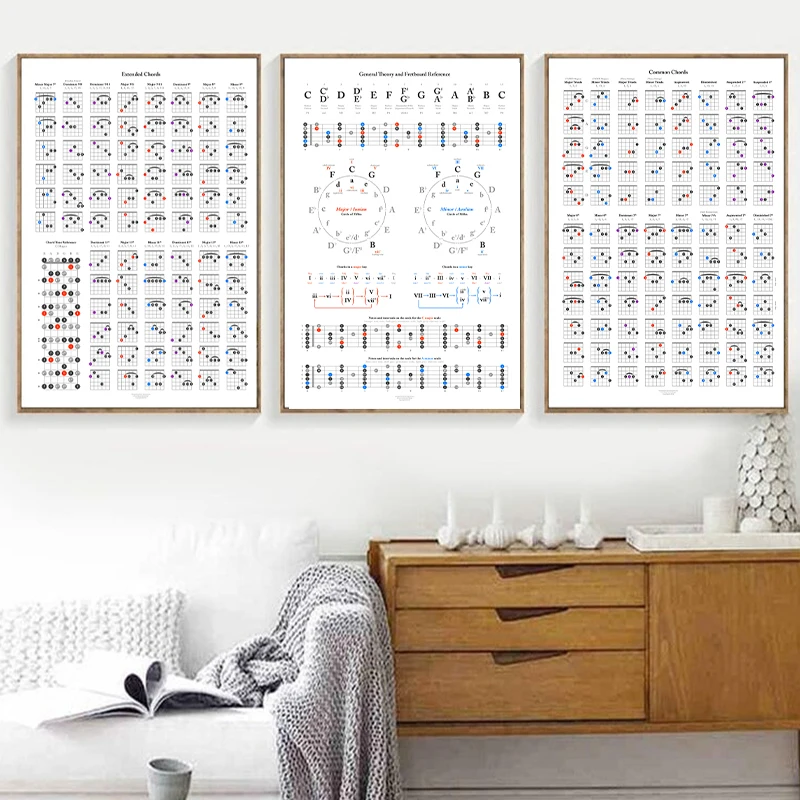 Теория гитары, справочные плакаты и принты, музыкальный любовник, гитара-подарок аккорд, диаграмма, художественный плакат на холсте, живопись, домашнее искусство, декор для стен
