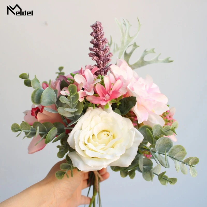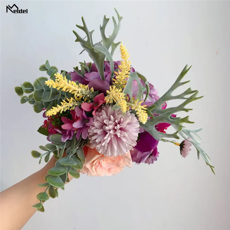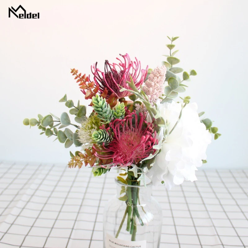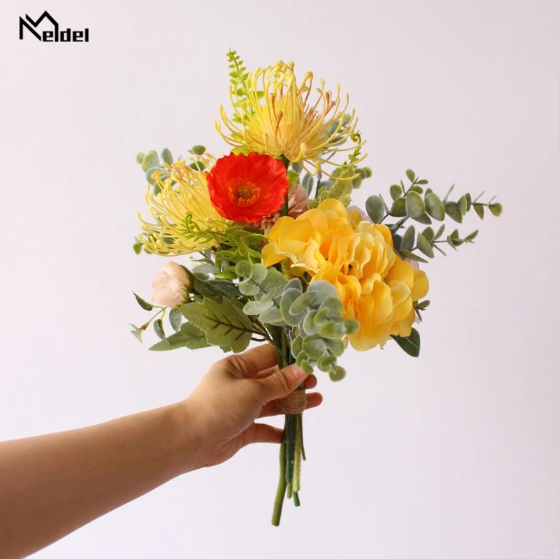 D: Шелковая Роза Пион помпон Цветочная головка, листья эуцилапта и другие аксессуары