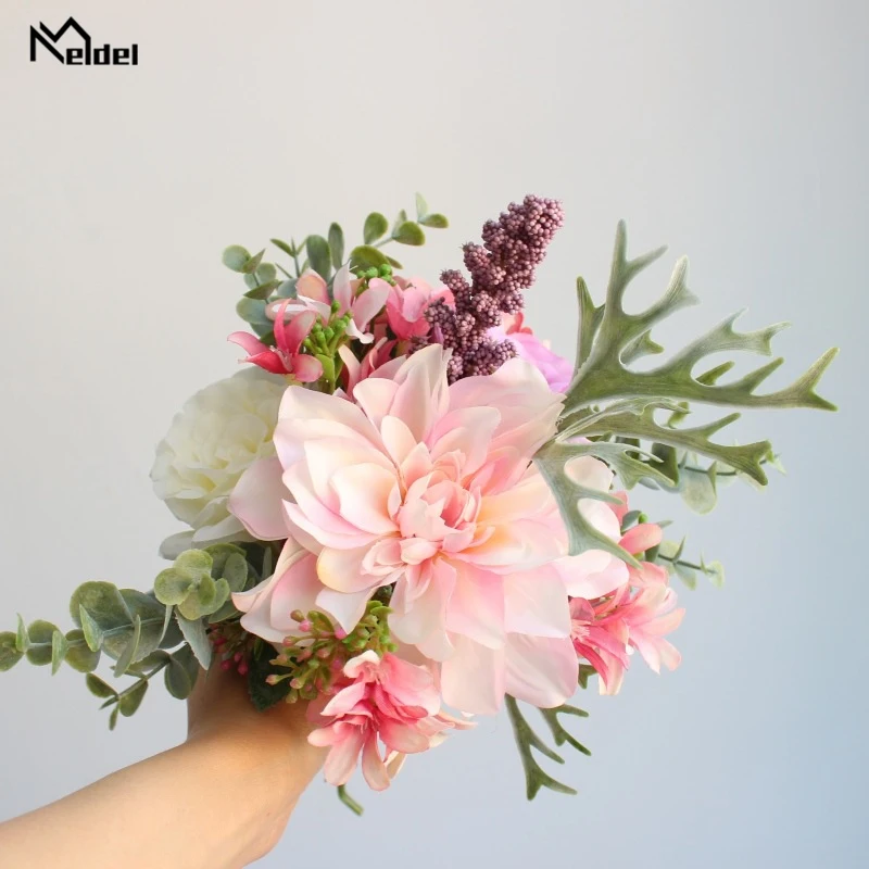 E: Шелковый Георгин Роза Орхидея голова цветка, листья эуцилапта и другие аксессуары