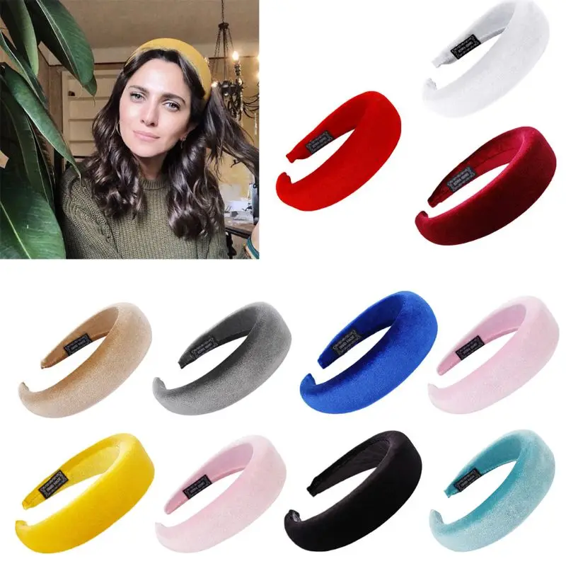 Женский широкий обруч для волос, винтажный бархатный обруч для волос ярких цветов, 11 цветов