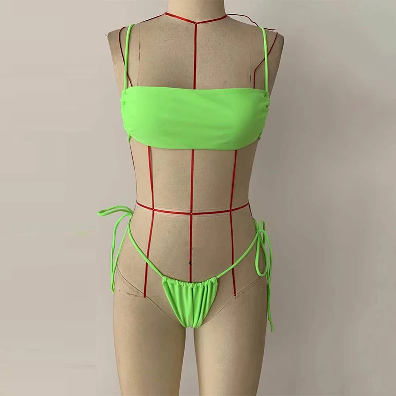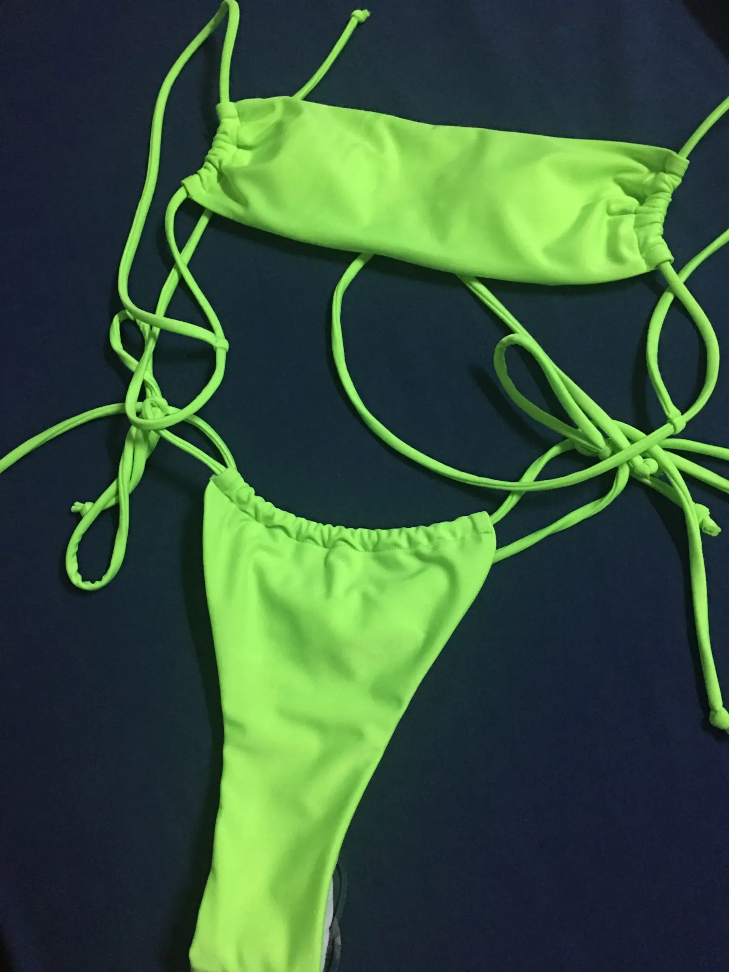 Неоновый зеленый Бикини бандо Купальник для женщин сплошной купальн...