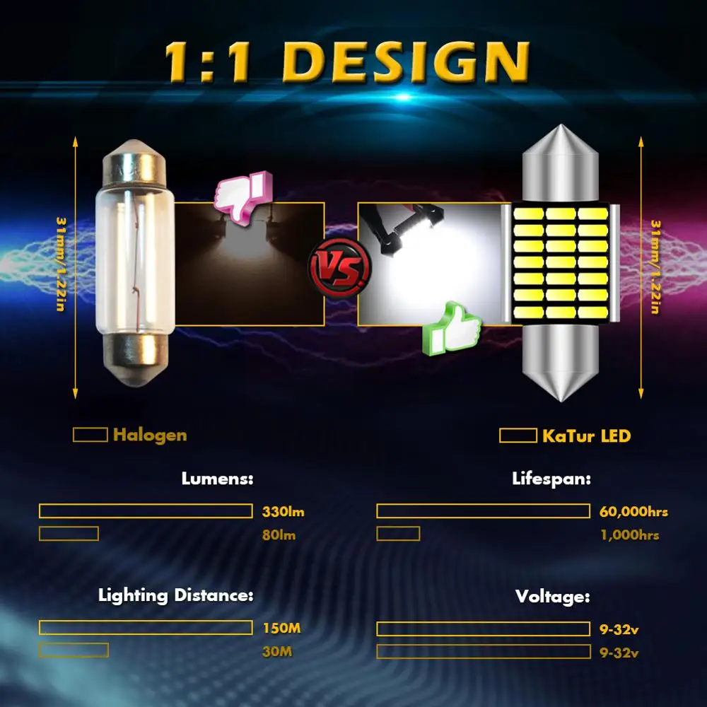 1. Совместимость с большинством автомобилей, без ошибок, Canbus, низкое энергопотребление. 2. Простота установки, просто подключите и играйте. Высокая яркость с хорошим дизайном. 3. Весовой светильник, длительный срок службы, хорошая замена для оригинального галогенного номерного знака светильник.
