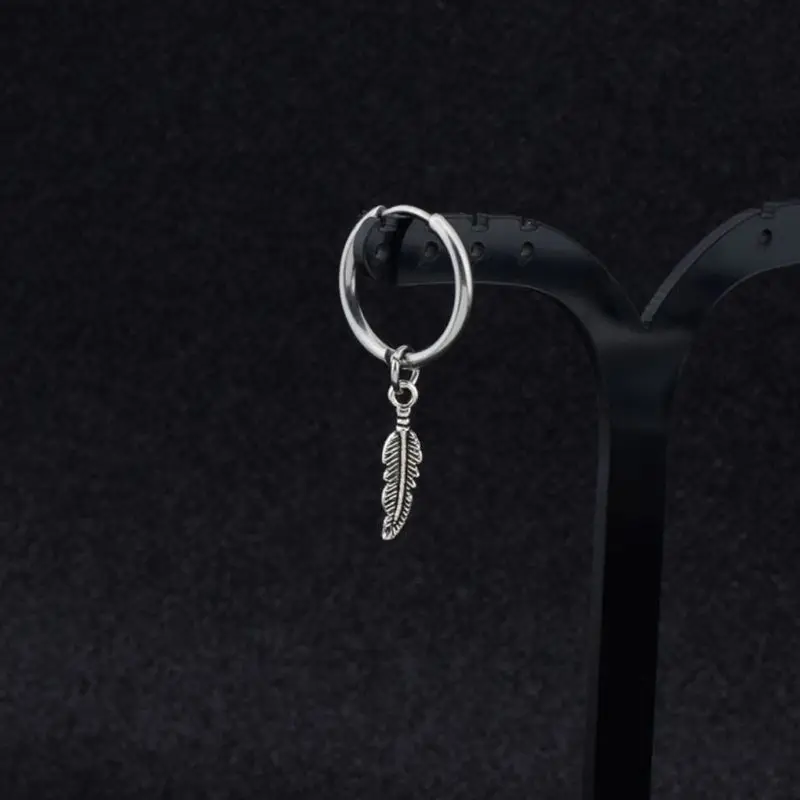 Подвеска в виде листьев в стиле хип-хоп Kpop Boy, титановое перо, серьги-кольца, корейские украшения