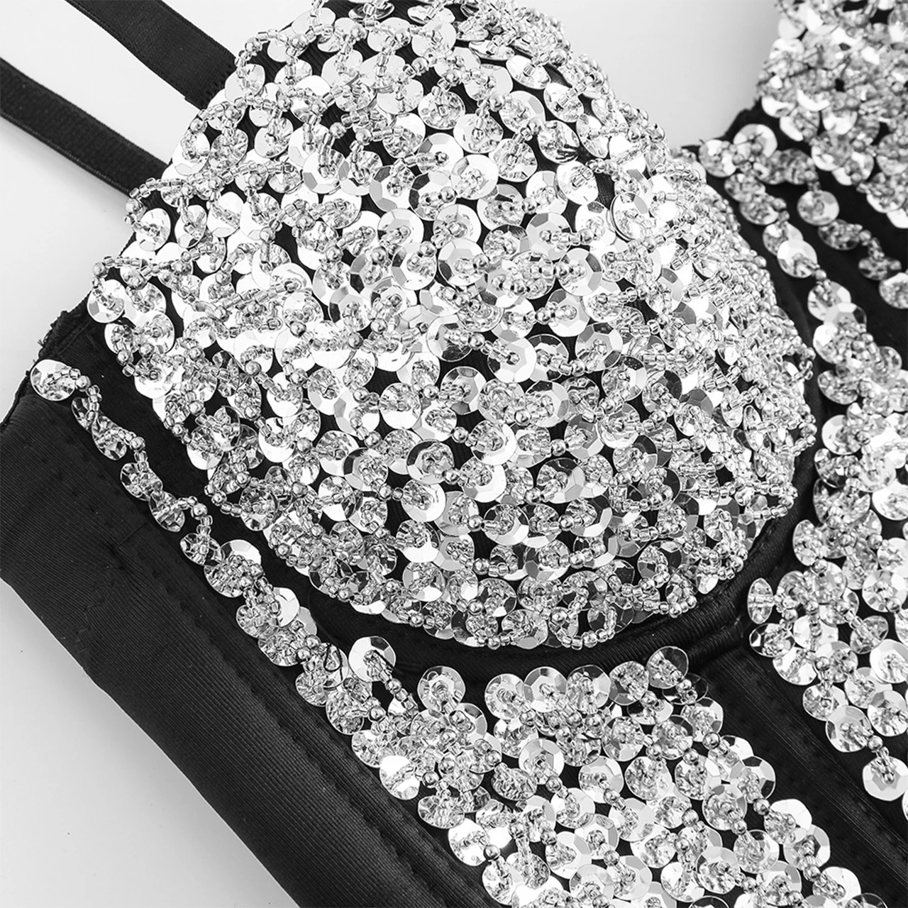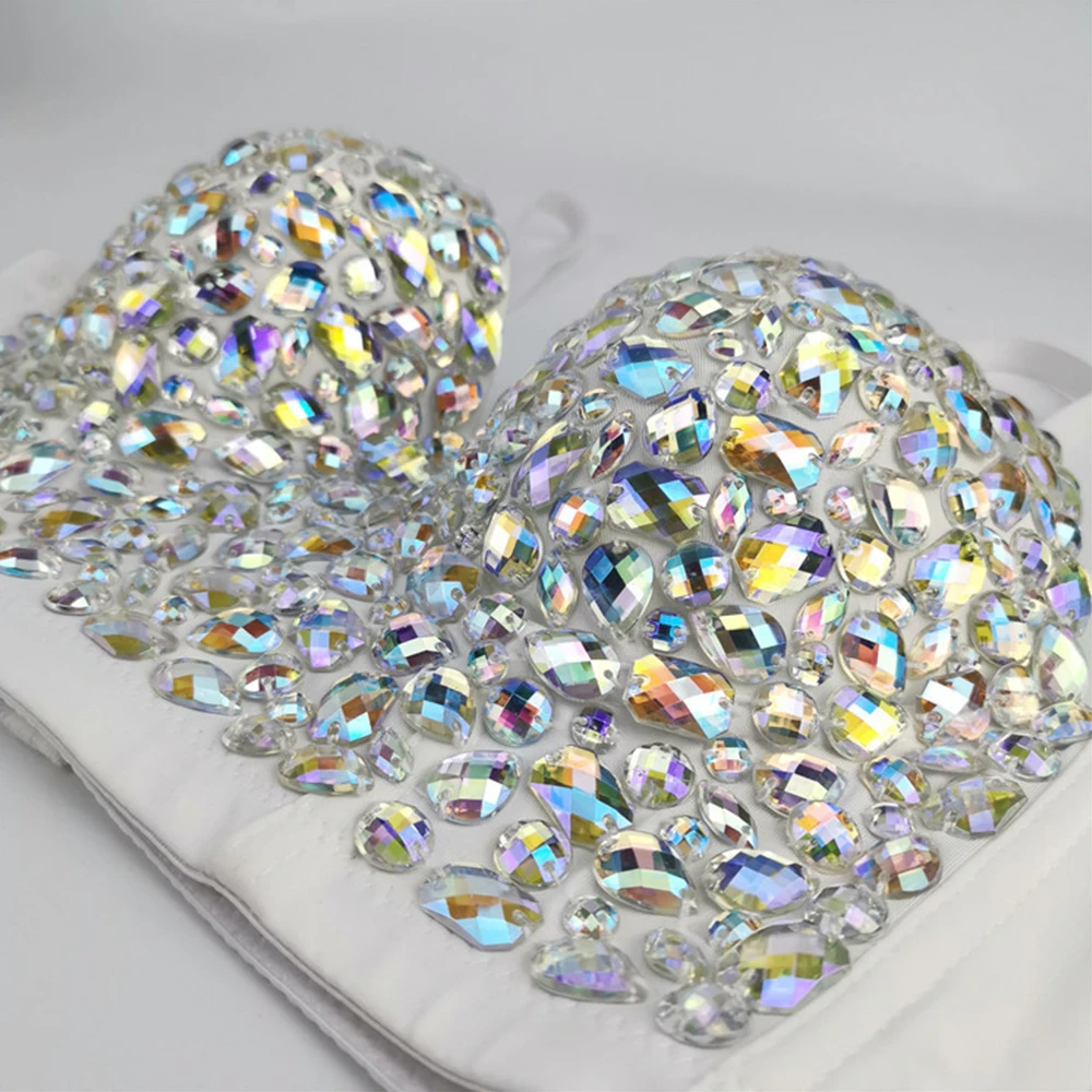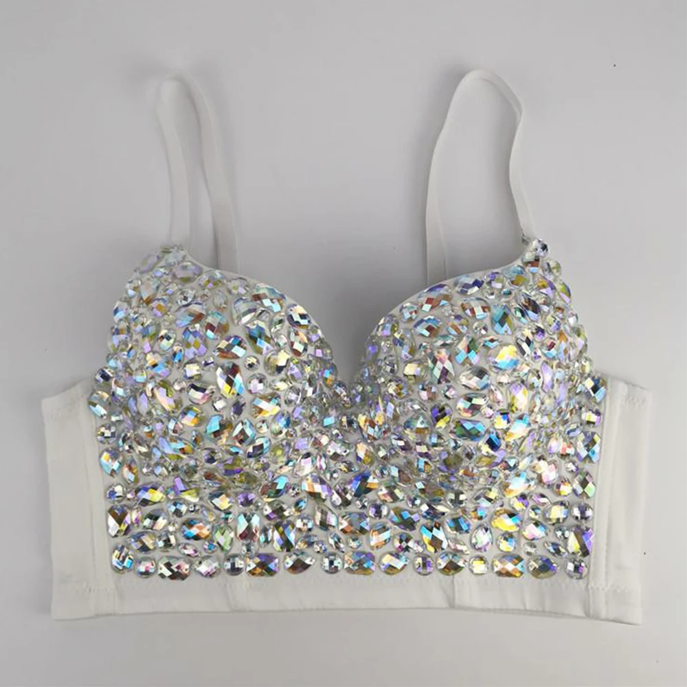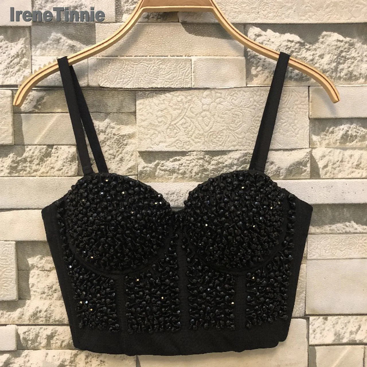 Блестящий укороченный топ IRENE TINNIE, Стразы ручной работы, блестящая майка с открытой спиной, сексуальный бюстгальтер вечерние вечерняя майка для ночного клуба