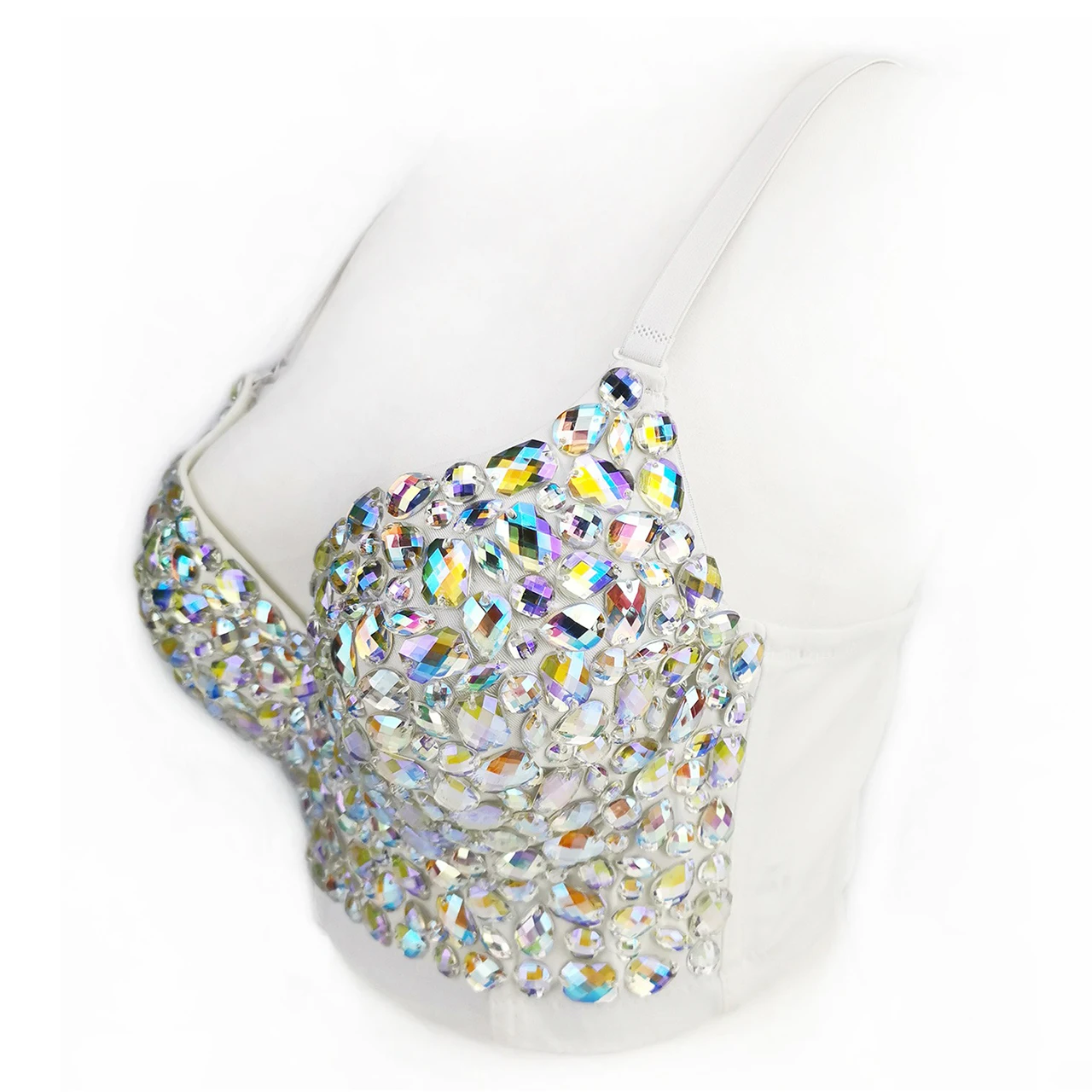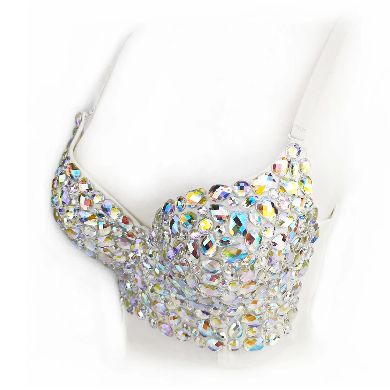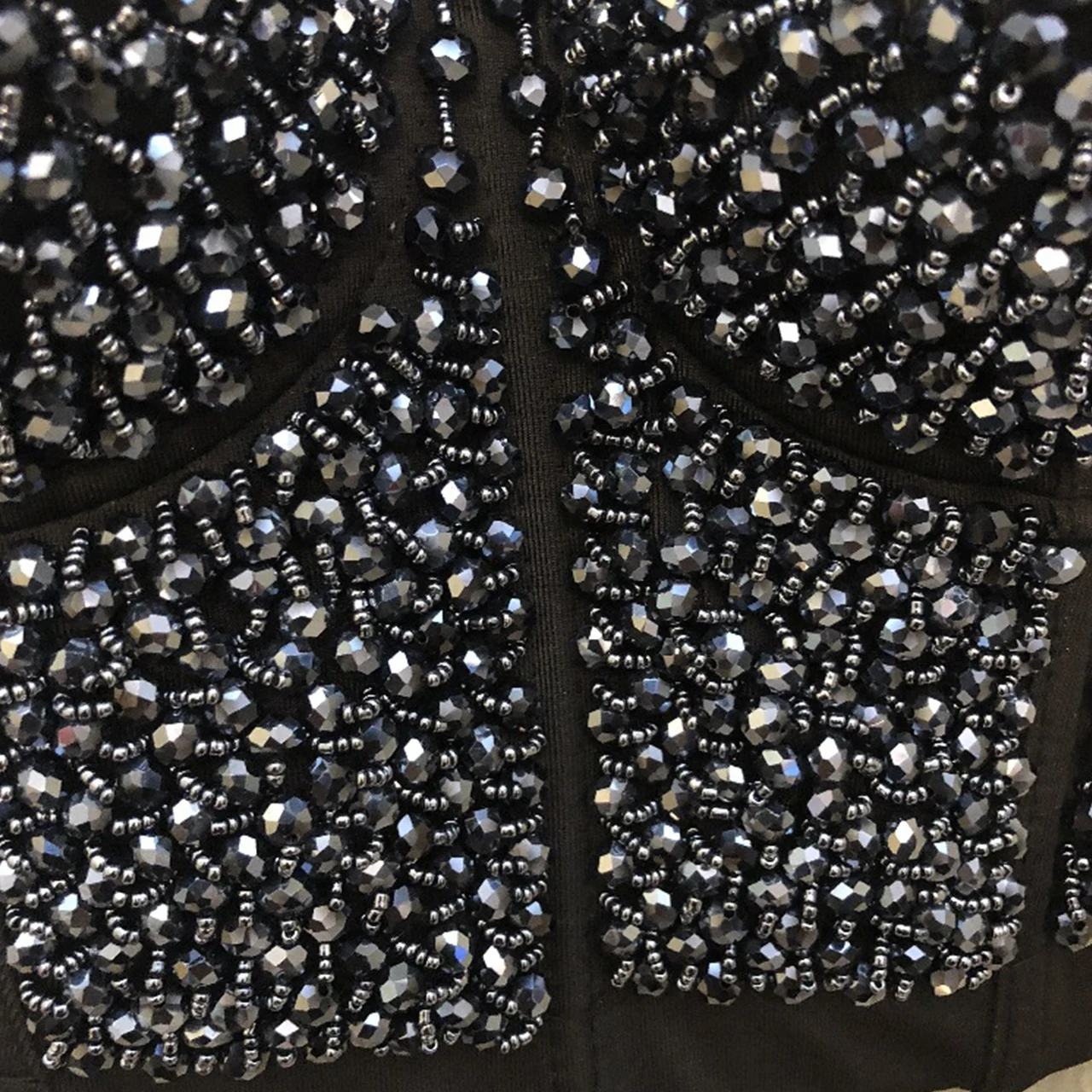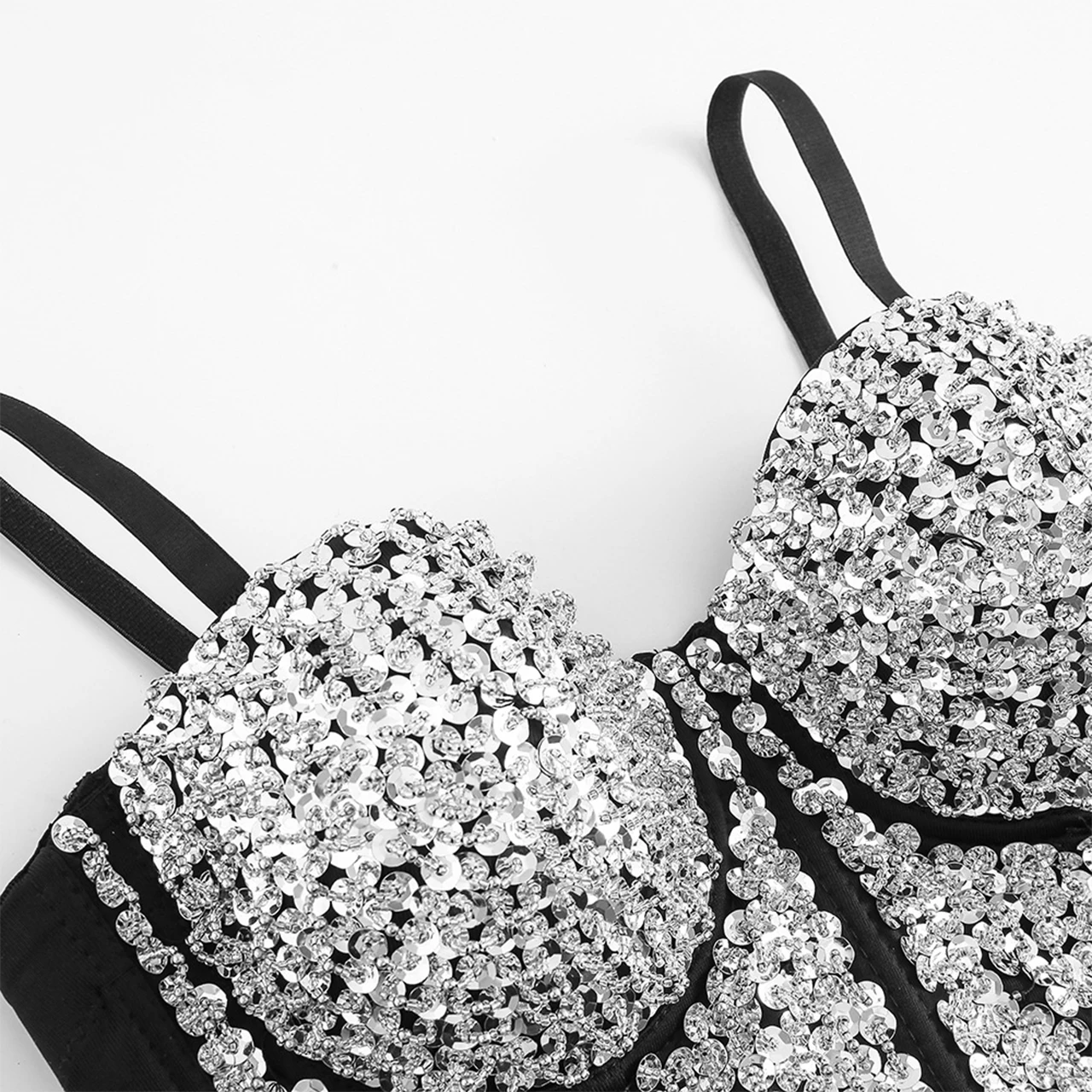 Блестящий укороченный топ IRENE TINNIE, Стразы ручной работы, блестящая майка с открытой спиной, сексуальный бюстгальтер вечерние вечерняя майка для ночного клуба