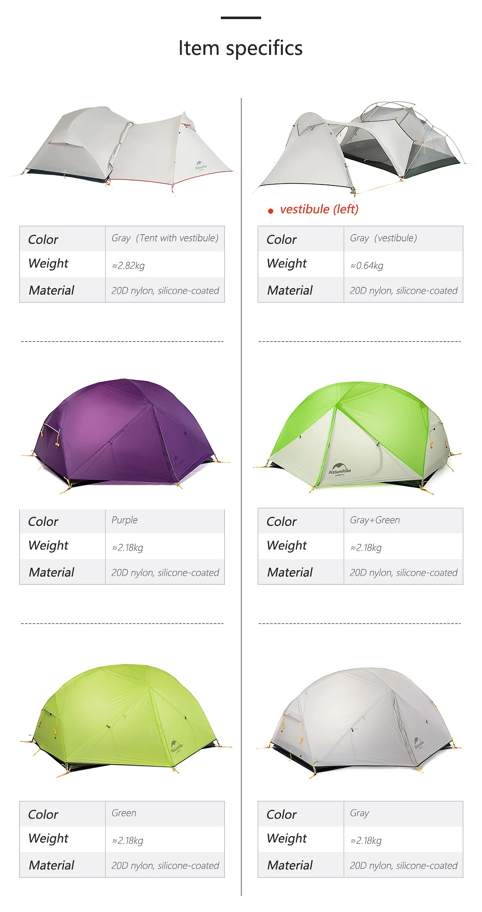 Палатка для кемпинга Naturehike Mongar, сверхлегкая двухместная палатка для кемпинга, тамбурный костюм для Hubba